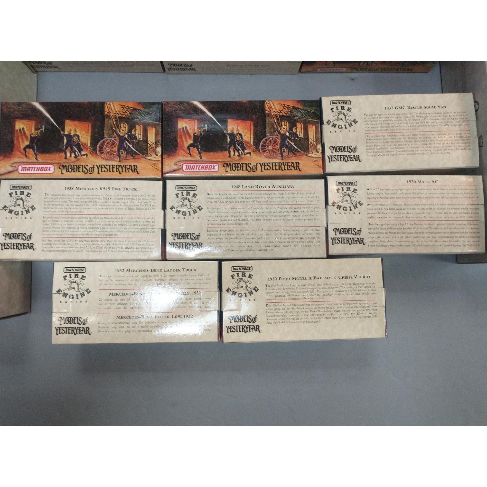 Twenty two MATCHBOX Models of Yesteryear FIRE ENGINE series including 1933 Cadillac fire wagon, 1939 Bedford Pump, 1930 Ford Model A Battalion Chiefs vehicleApprox 22 pieces
