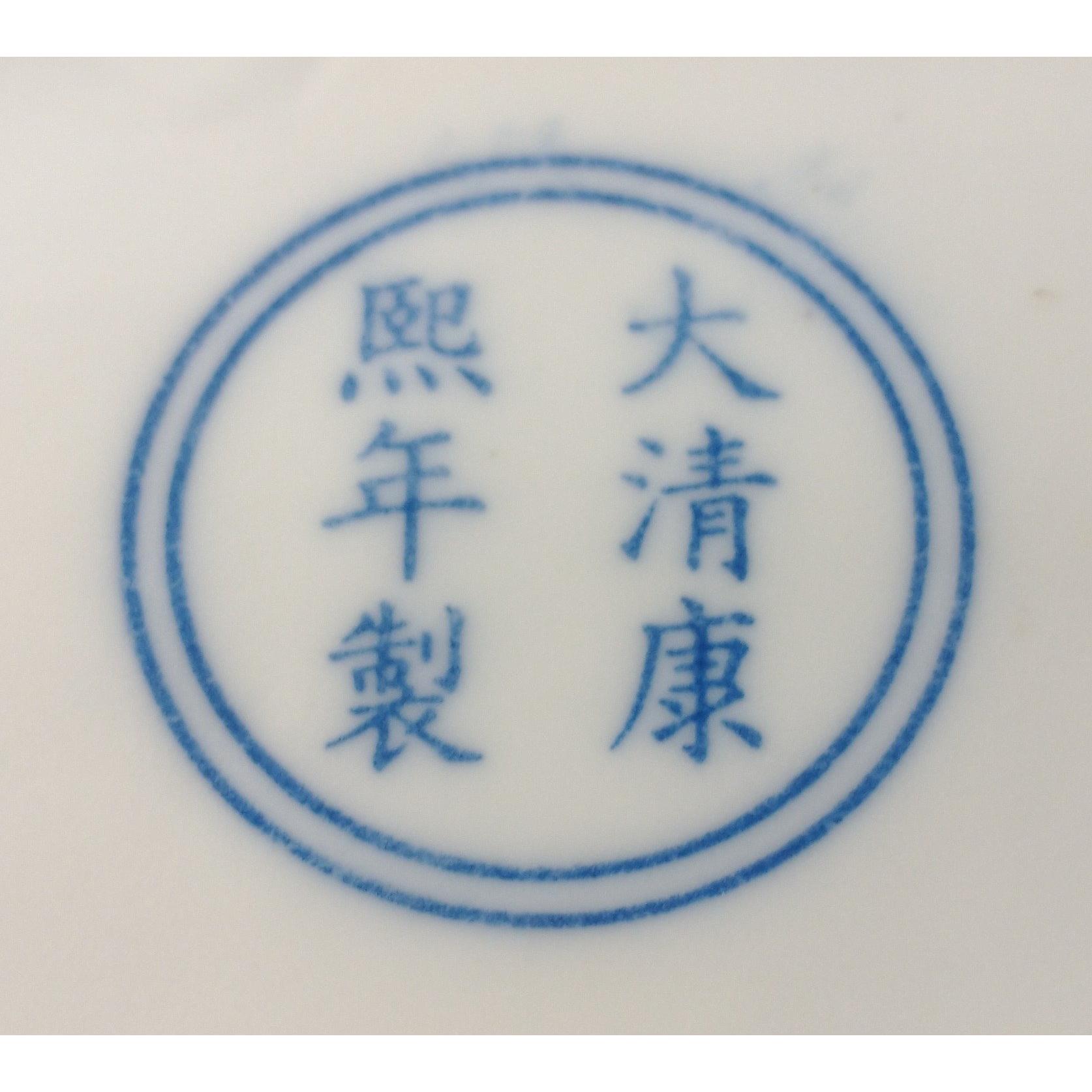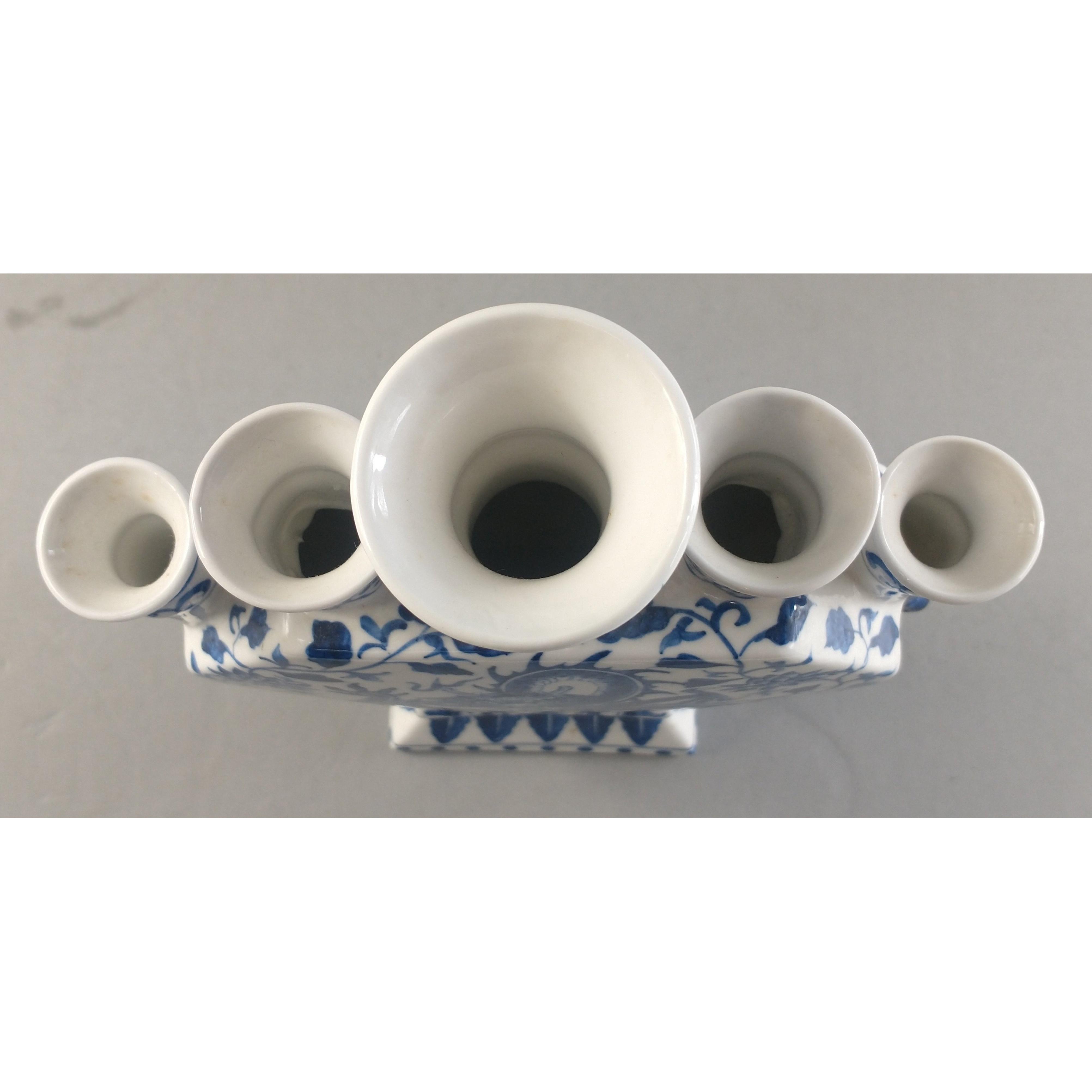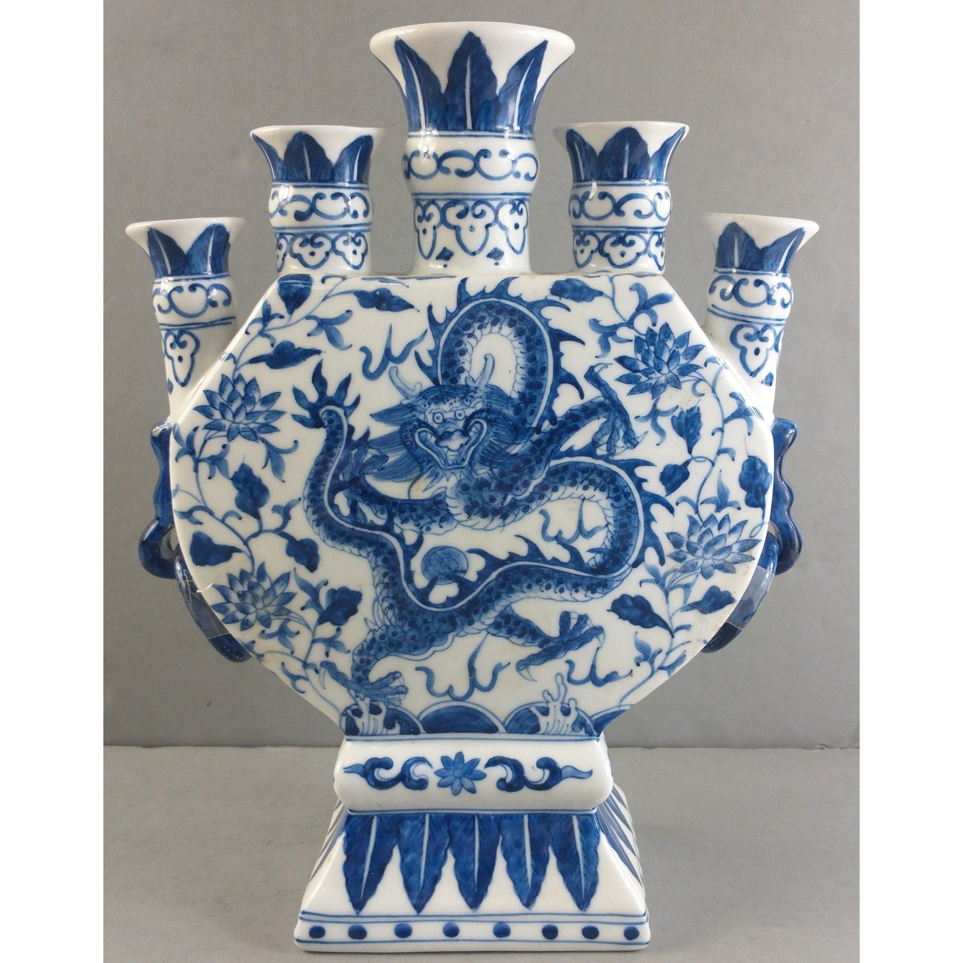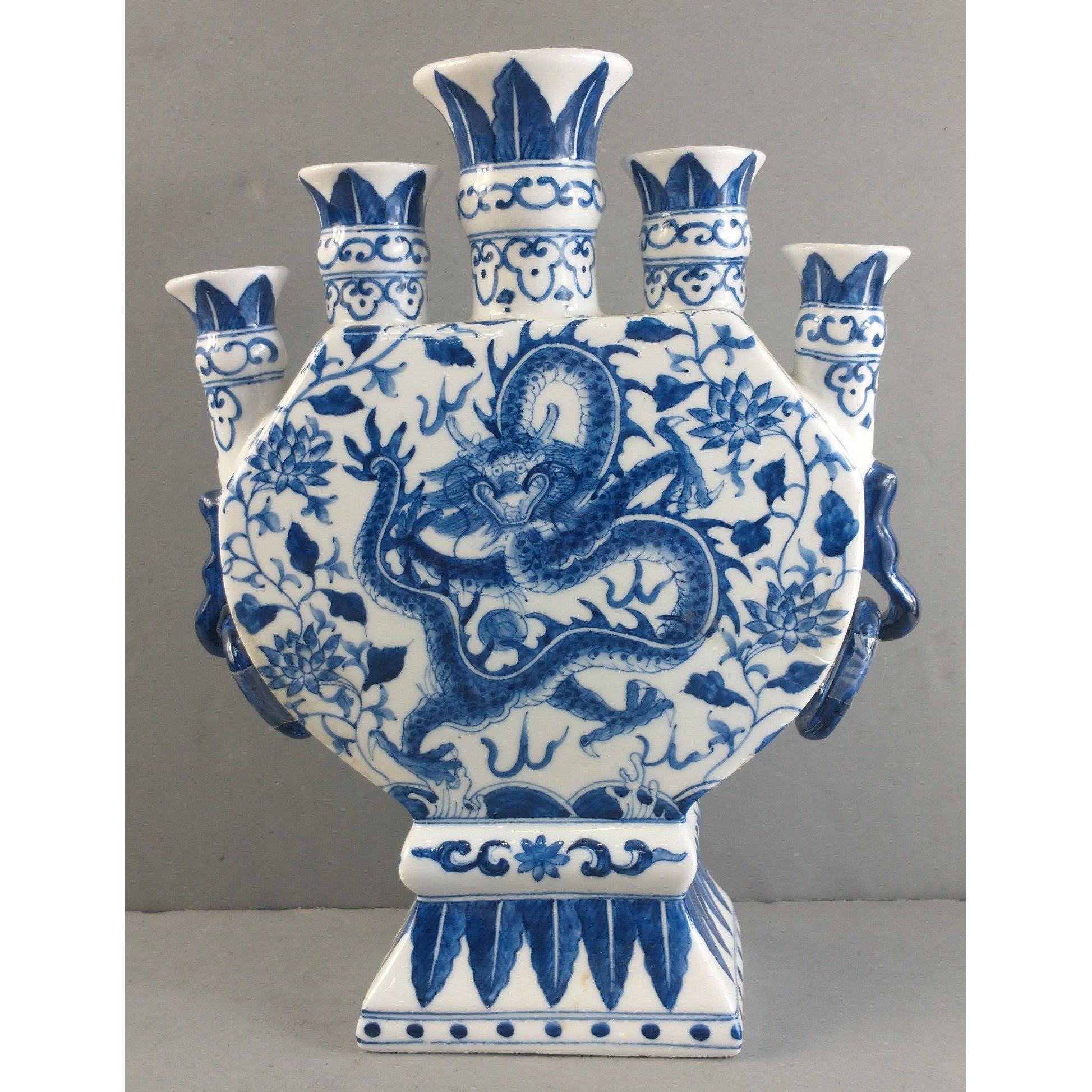 A vintage blue/white Asian tulip bowl with dragon motif standing 25cm tall with Chinese marks to base. No damageApprox 1 pieces