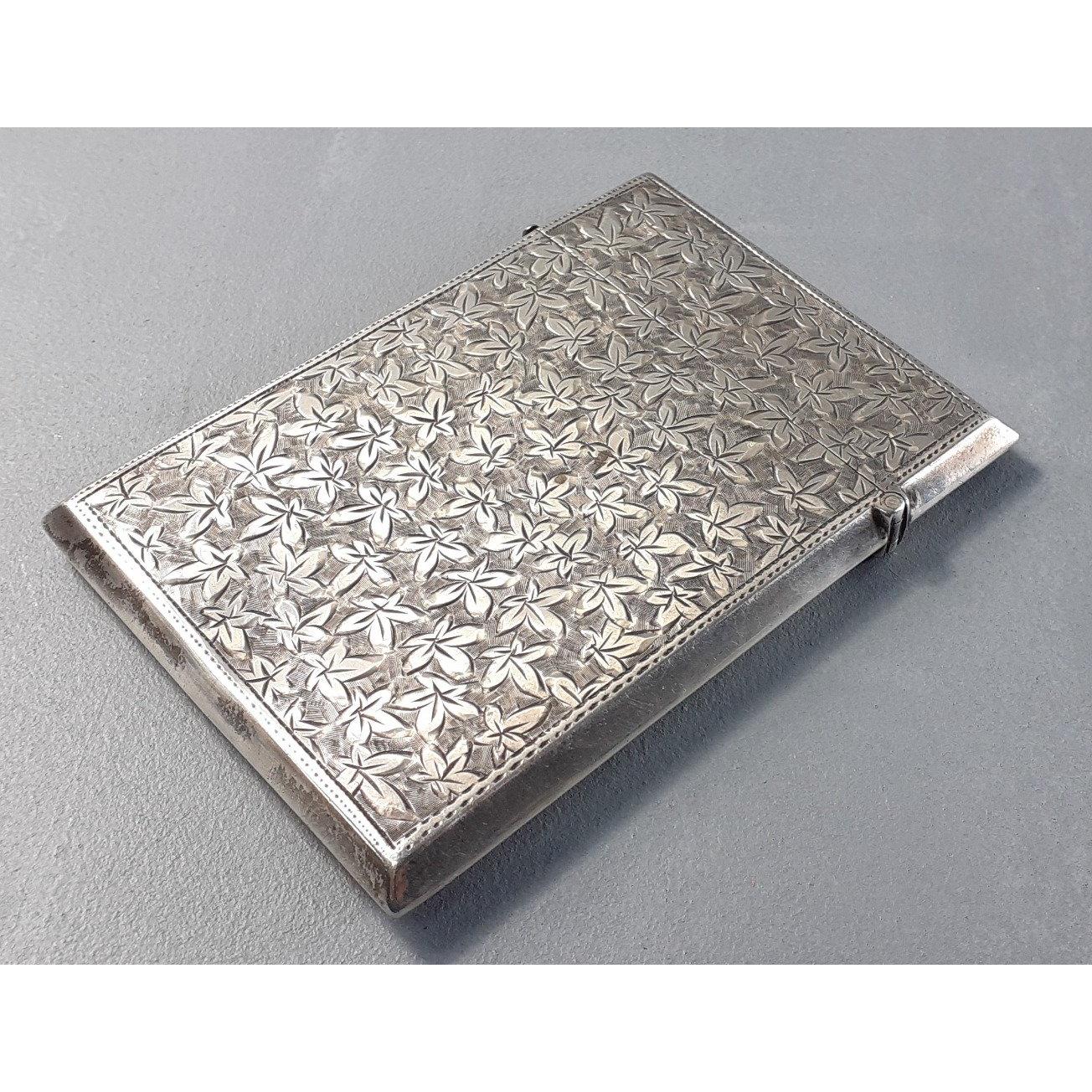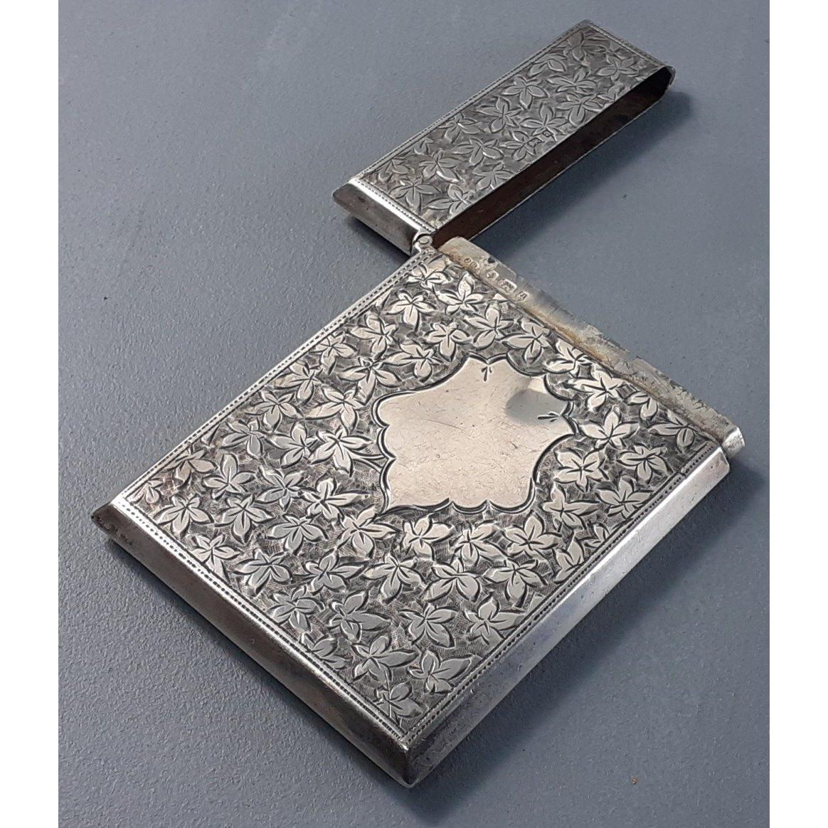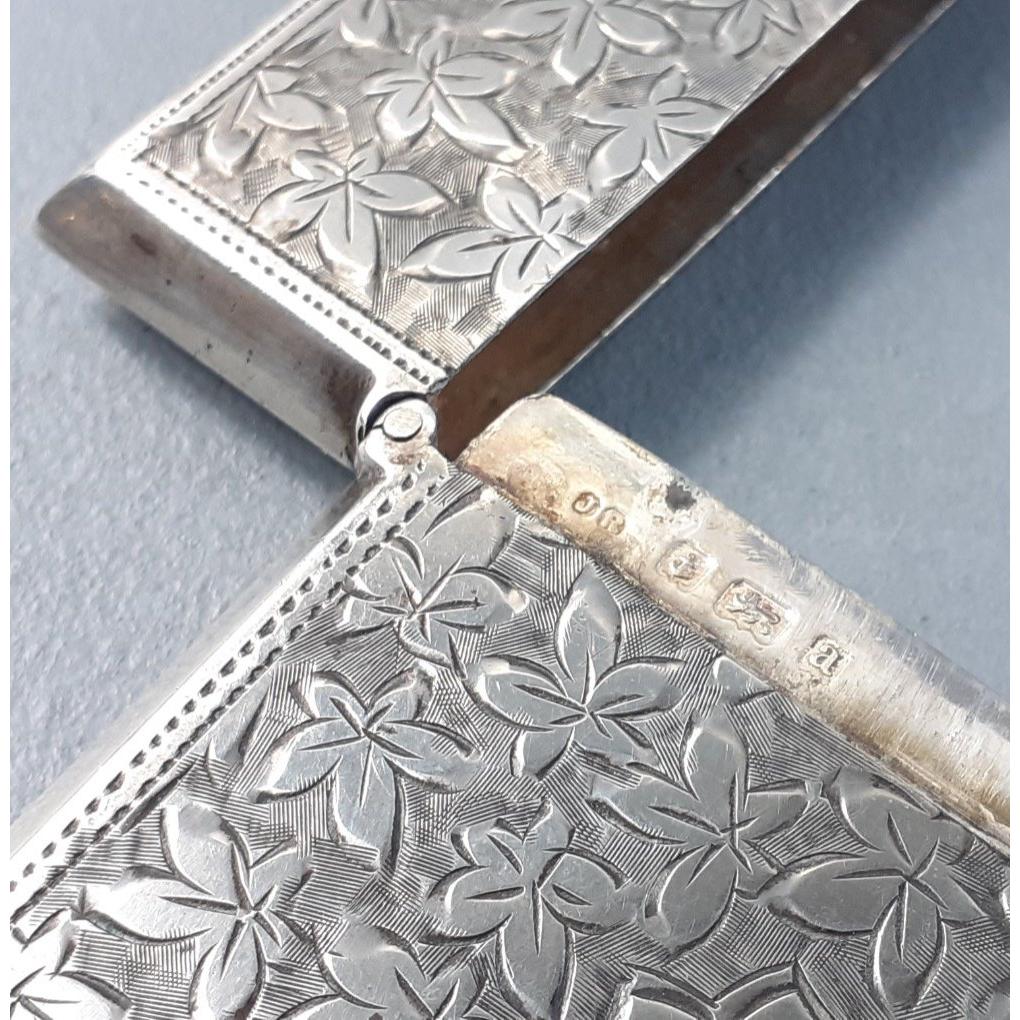 A lovely bright cut sterling silver fully hallmarked card case, Birmingham 1900. Maker JR. Size 95mm x 65mm. Weight 73g approx
