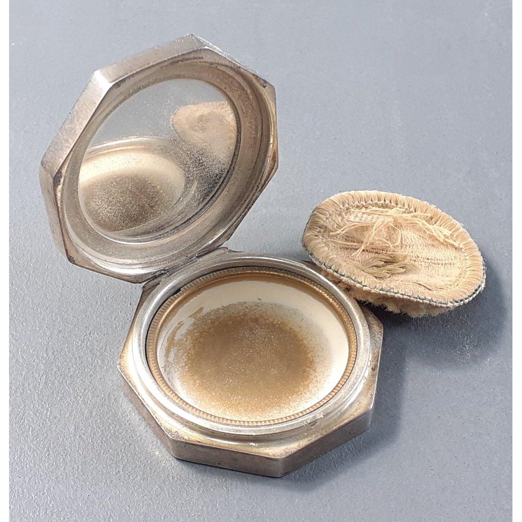 A small sterling silver powder compact hallmarked Birmingham 1929. 42mm diameter, gross weight 36g approx. In nice condition with no dents or dings.