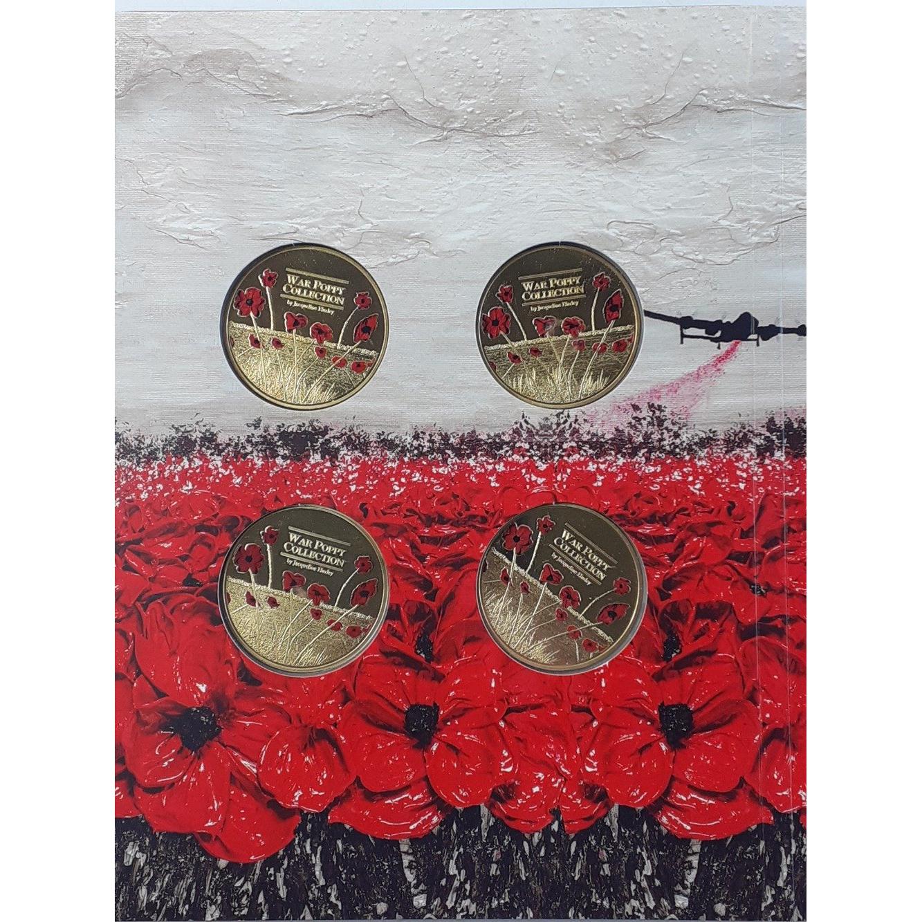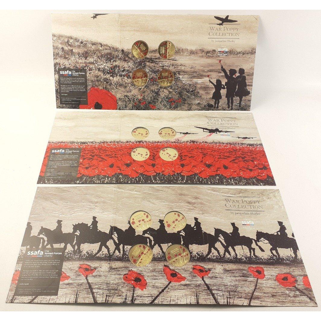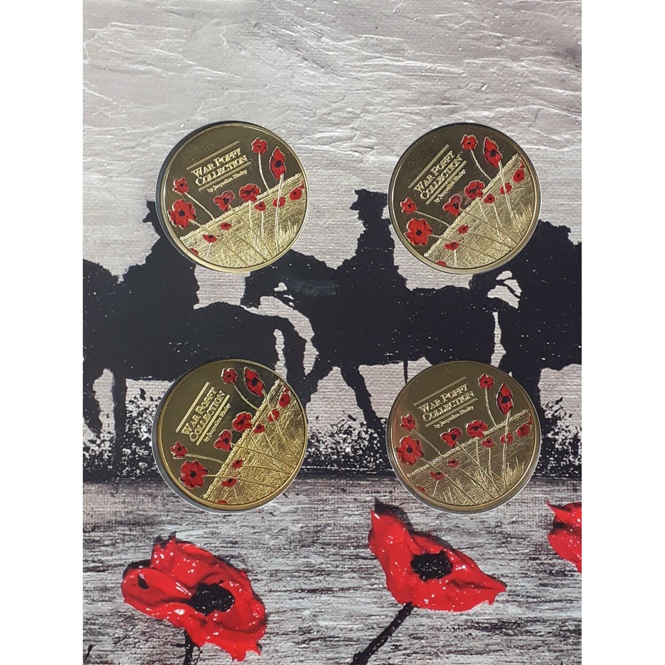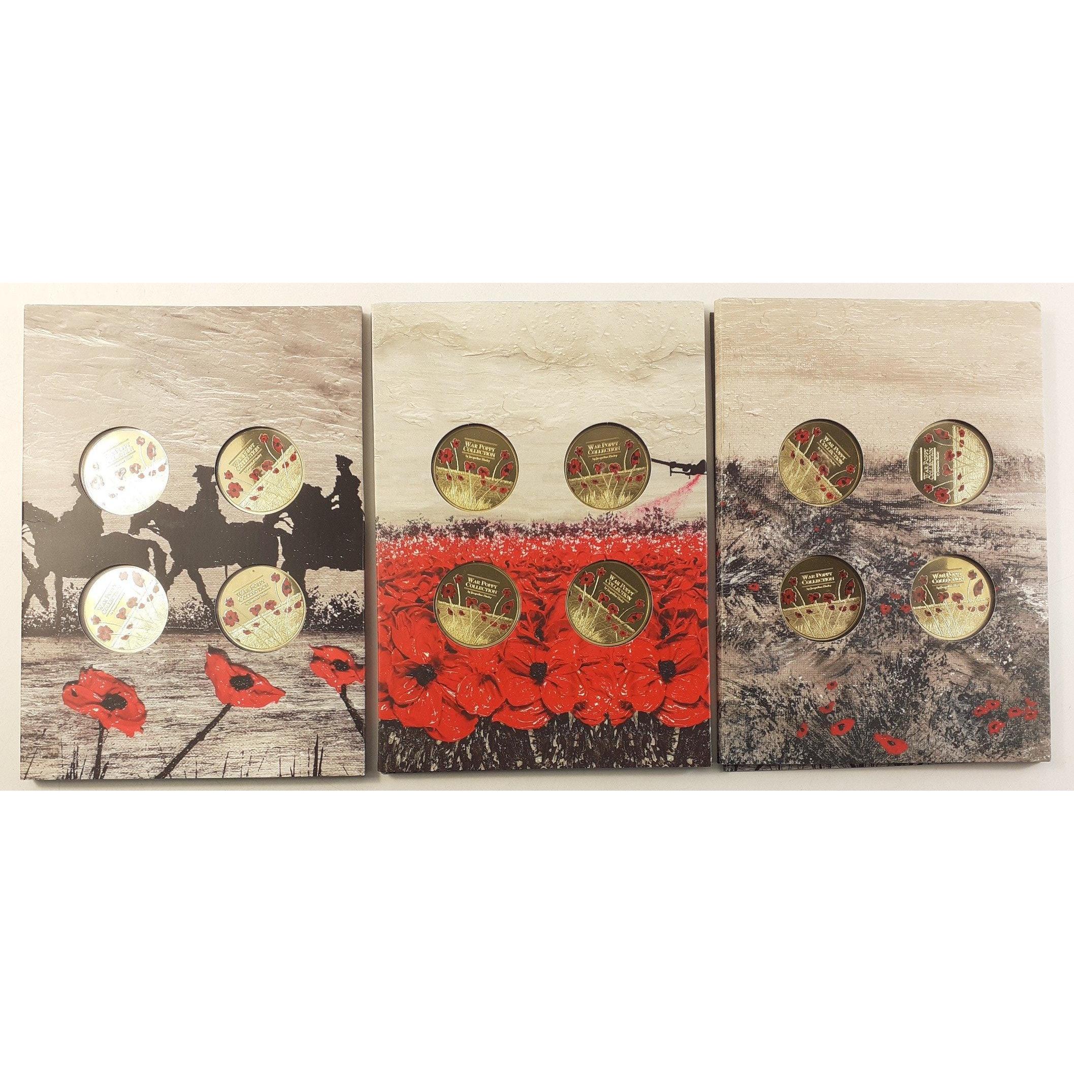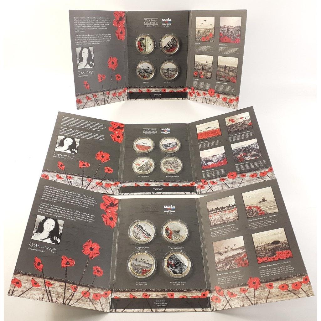 WAR POPPY COLLECTION. Three folders each containing four attractive 44mm coins, all different. A nice collection of twelve coins in three folders, all different. Approx 3 pieces