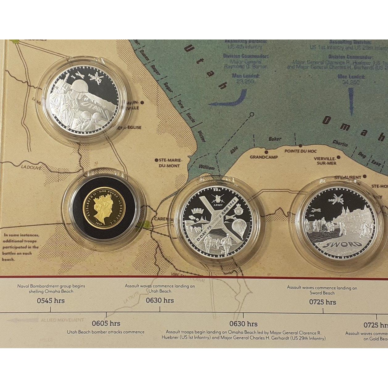 Bradford Exchange D Day 75th Anniversary Coin set which includes 1 x 9ct Gold £1 Coin (2.75g) others silver plated proofs. Attractive set nicely presented.