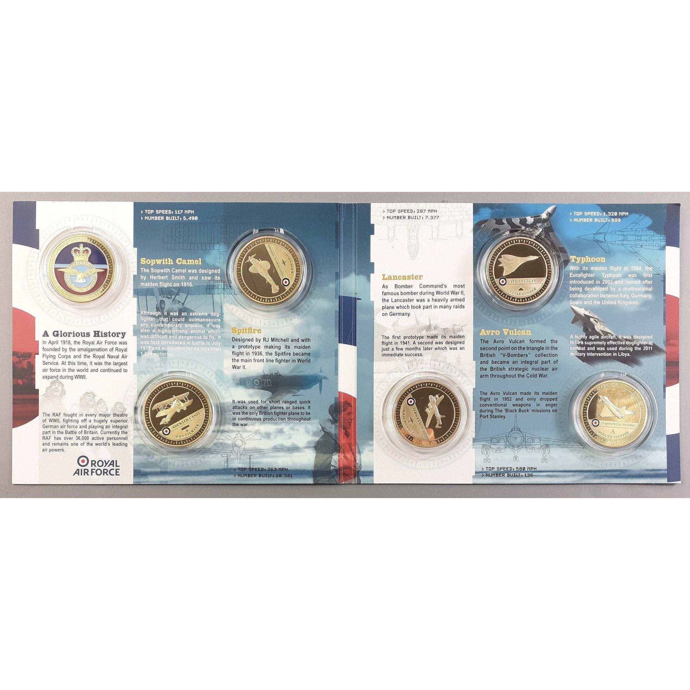 Royal Air Force "A GLORIOUS HISTORY'' Official Collector Pack coin set gold PLATED. Complete set in good condition folder.