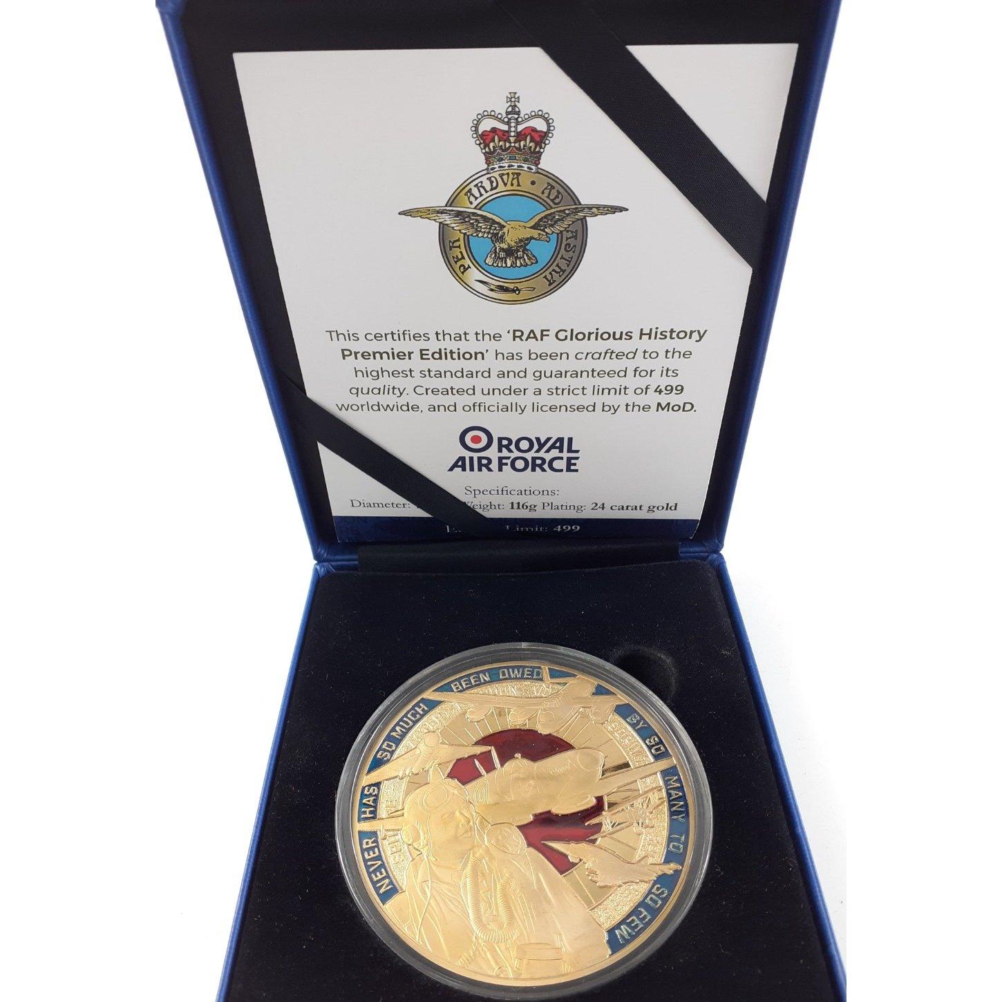 ROYAL AIR FORCE limited edition large 75mm 24 carat gold plated coin in presentation folder and box with leaflet.