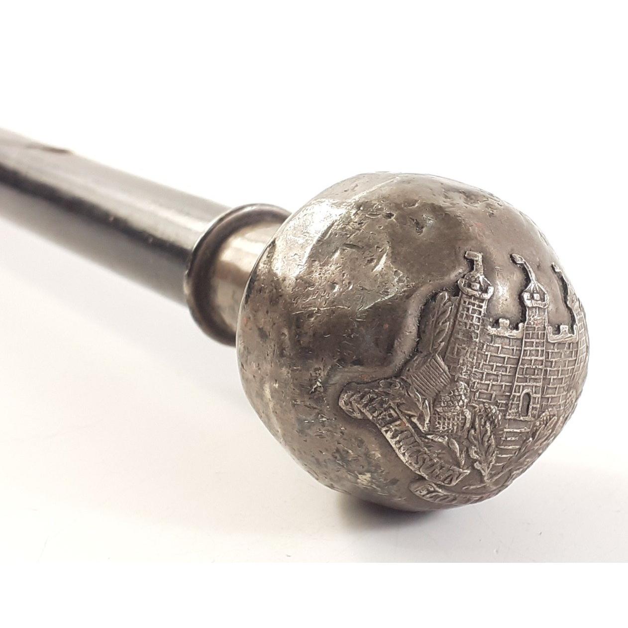 A vintage silver topped KOSB swagger stick, 75cm approx. Birmingham hallmarks, S date letter.