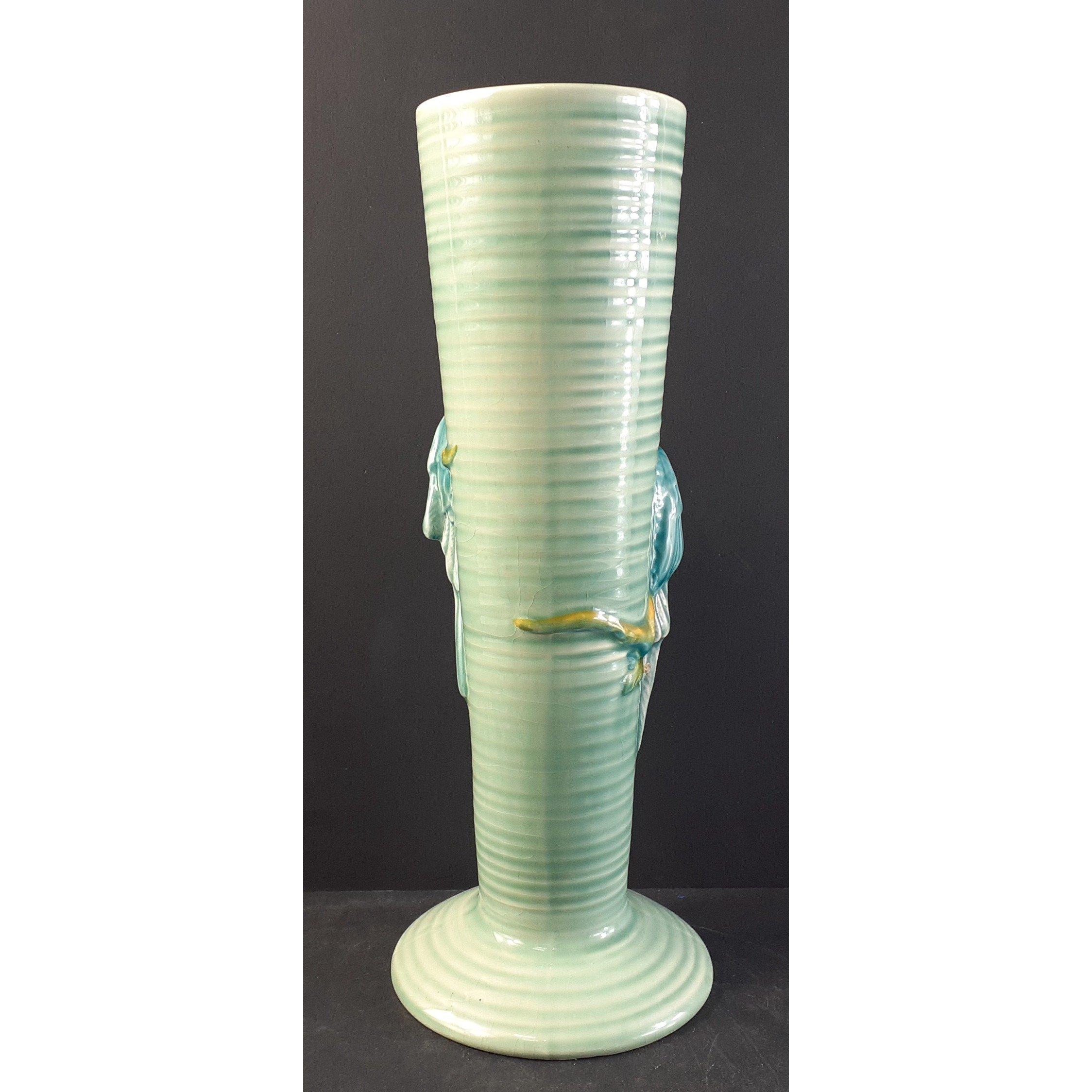 CLARICE CLIFF Newport Pottery budgerigar 12" pottery vase. A lovely piece in nice condition with no chips or cracks. Some light crazing to glaze as expected.