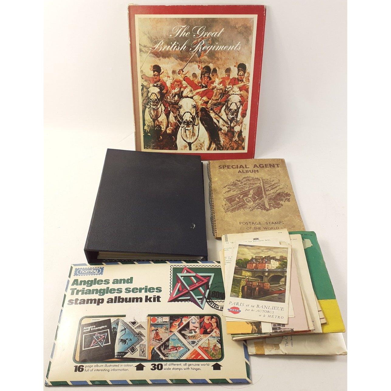 Interesting stamp and ephemera lot to include older stamp album, TEXACO complete set of The Great British regiments cap badges. Also some older maps and travel guides to include 'Camping in Jugoslavia' map /guide.