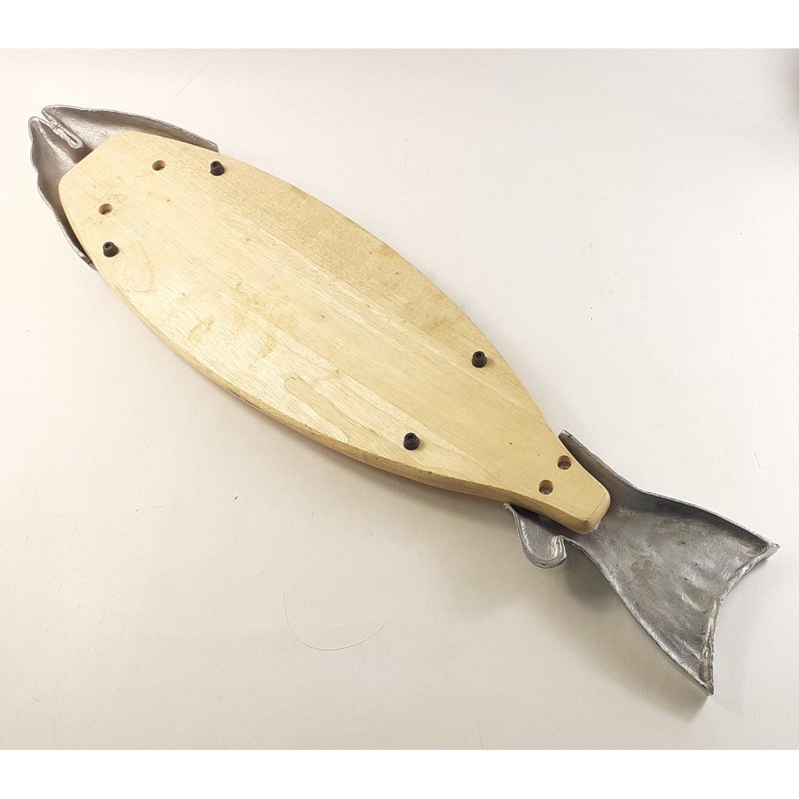 An unusual and substantial wooden and steel serving platter. Measures an impressive 90cm longApprox 1 pieces