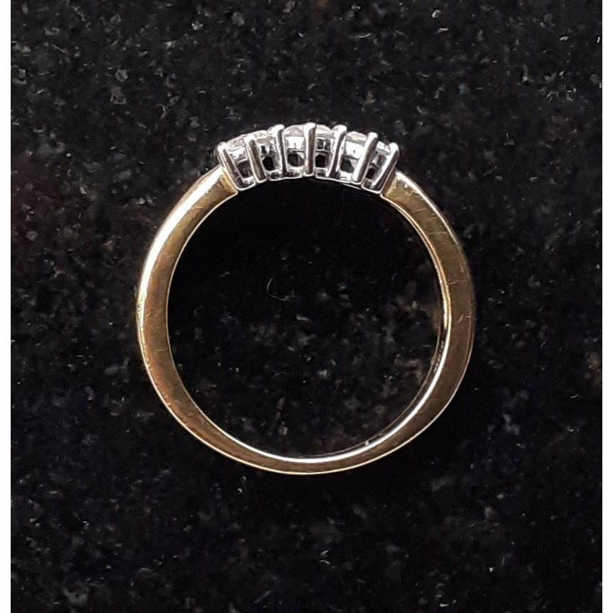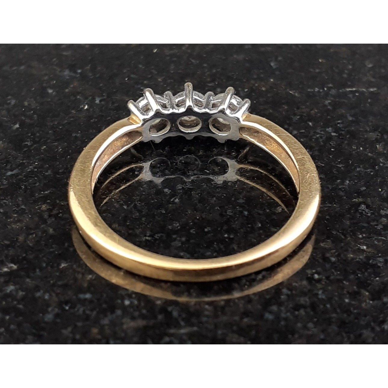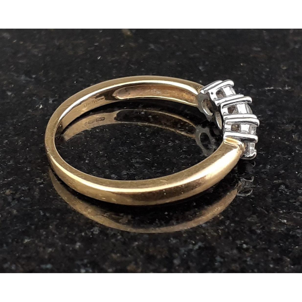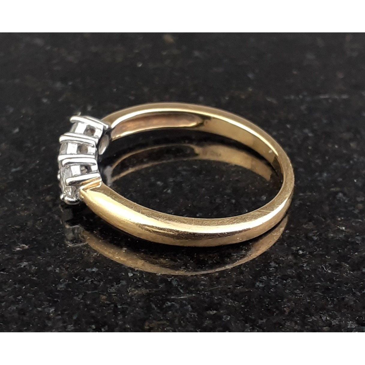 A 750 stamped diamond ring. 0.50 stamp with three diamonds (tested), the largest 3mm approx. Size M, gross weight 2.9g approx.