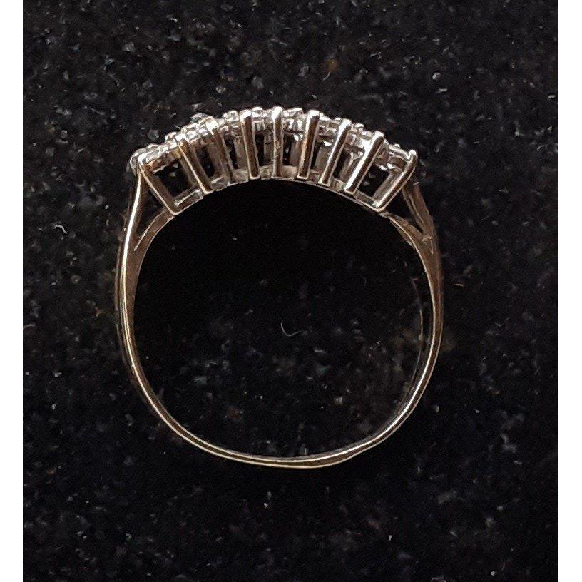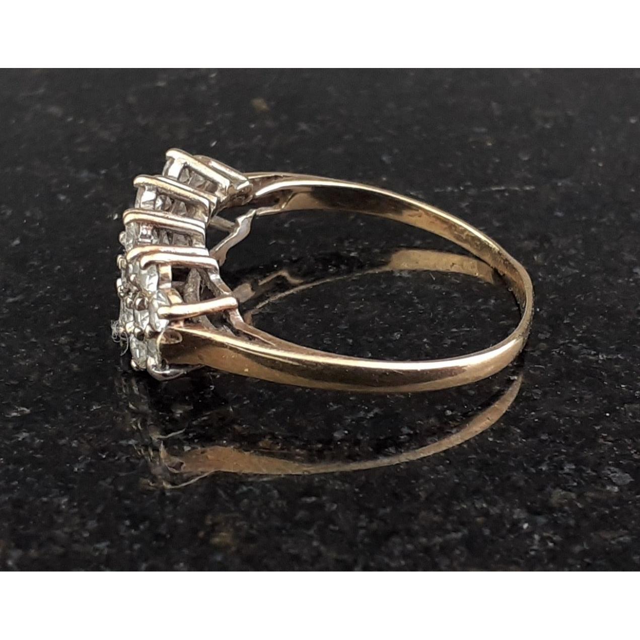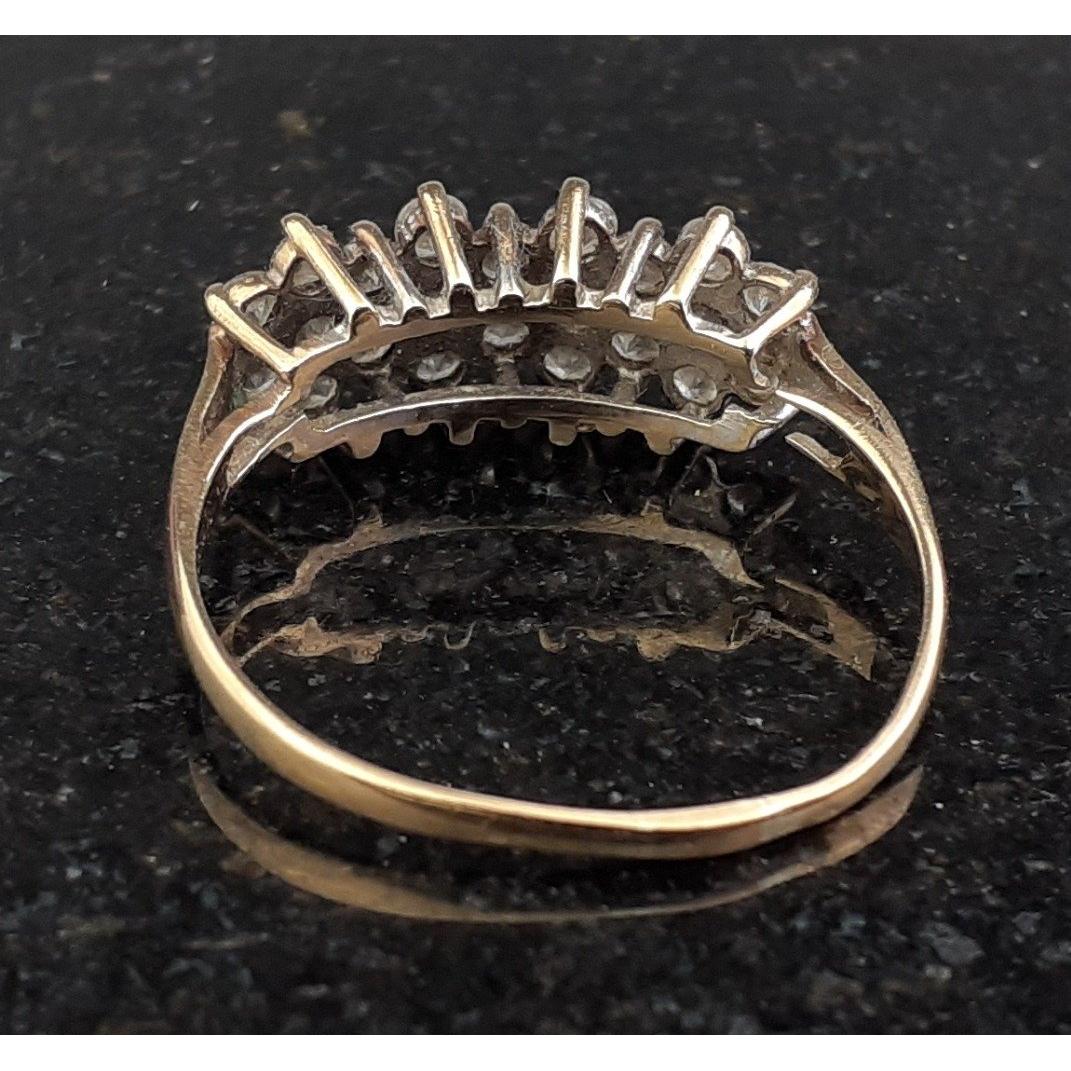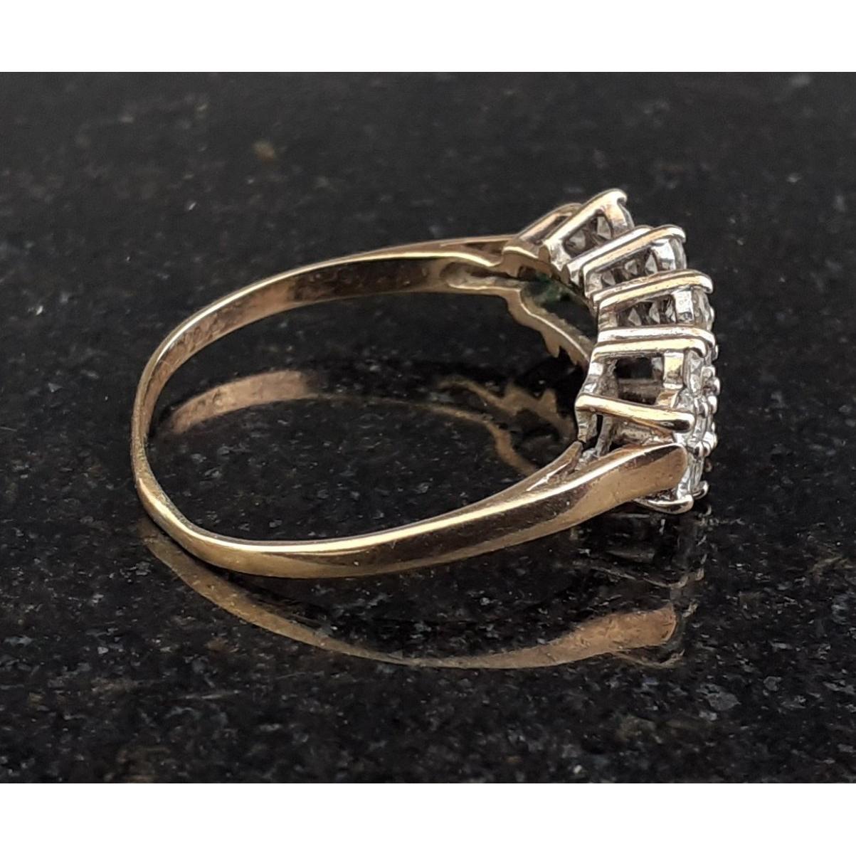 A 375 stamped ring with a cluster of white stones. Size R. Gross weight 2.3g approx.
