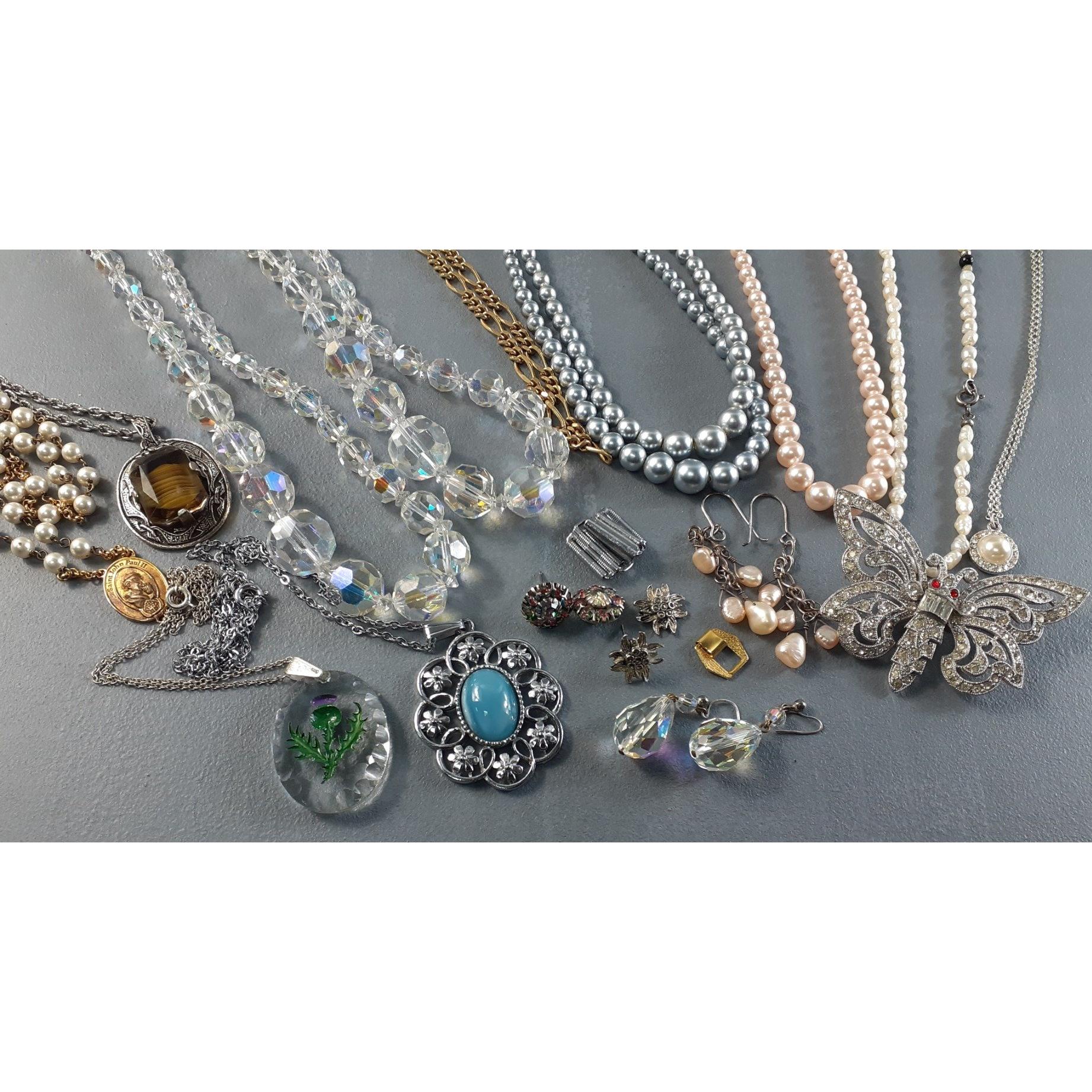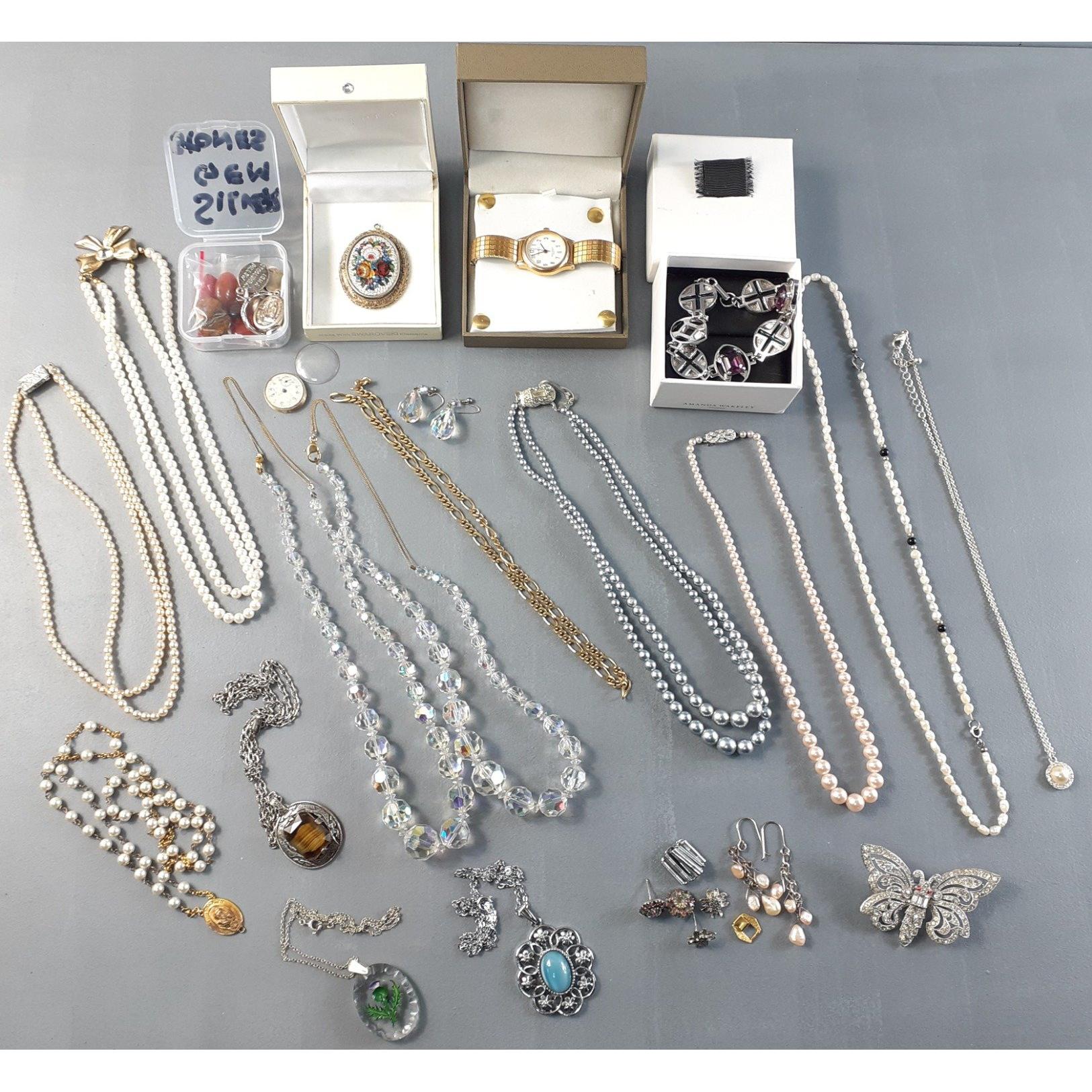 A mixed lot of jewellery including faux pearl necklaces, crystal bead necklaces etc