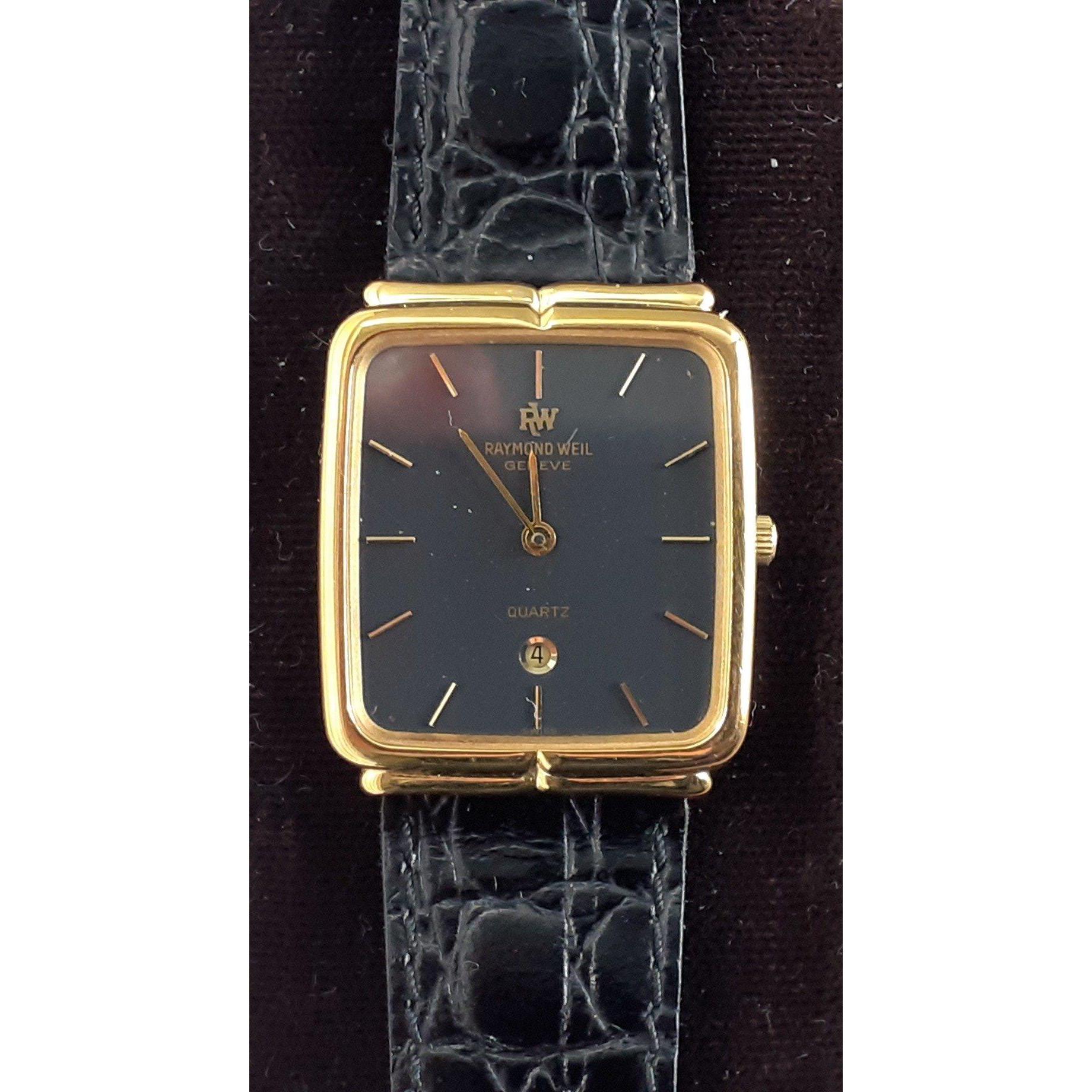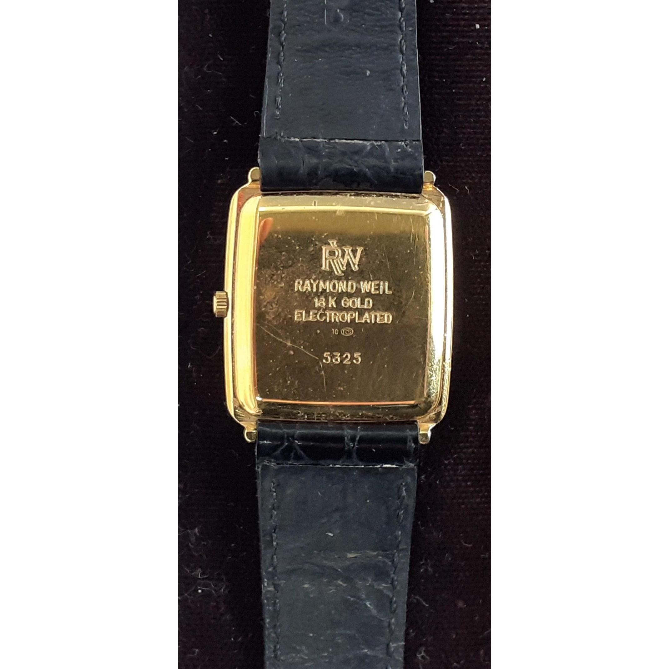 RAYMOND WEIL GENEVE QUARTZ gents wristwatch 18ct gold plated serial No 5325 - requires a battery - in overall good condition - comes in original jeweller's presentation box