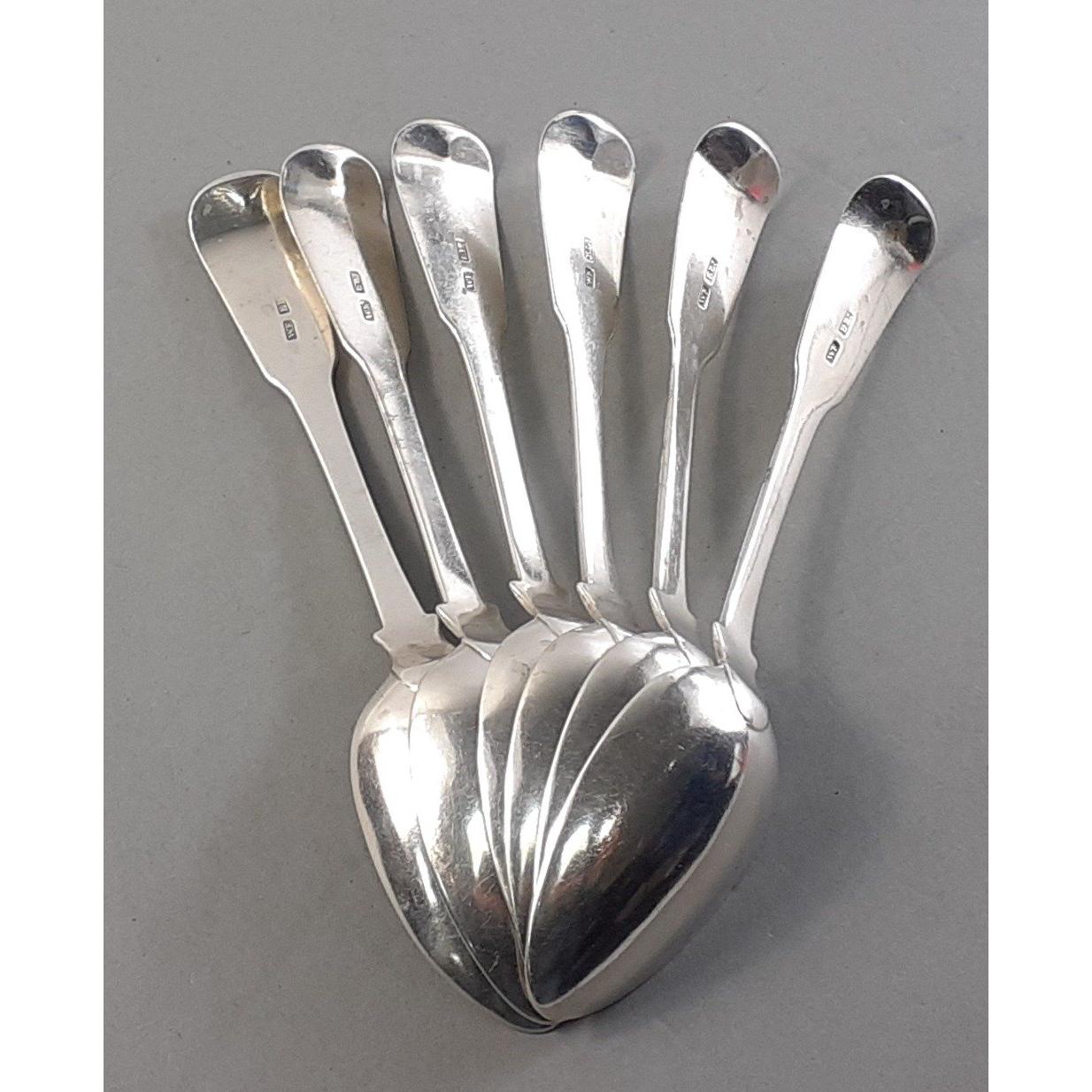 Six RARE ELGIN dessert spoons by WILLIAM FERGUSON each 17.5cm approx monogrammed on handle. Total weight 255g approxApprox 6 pieces