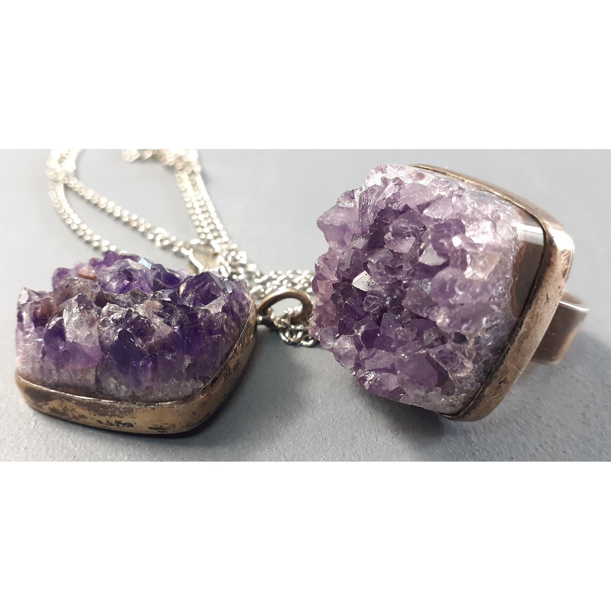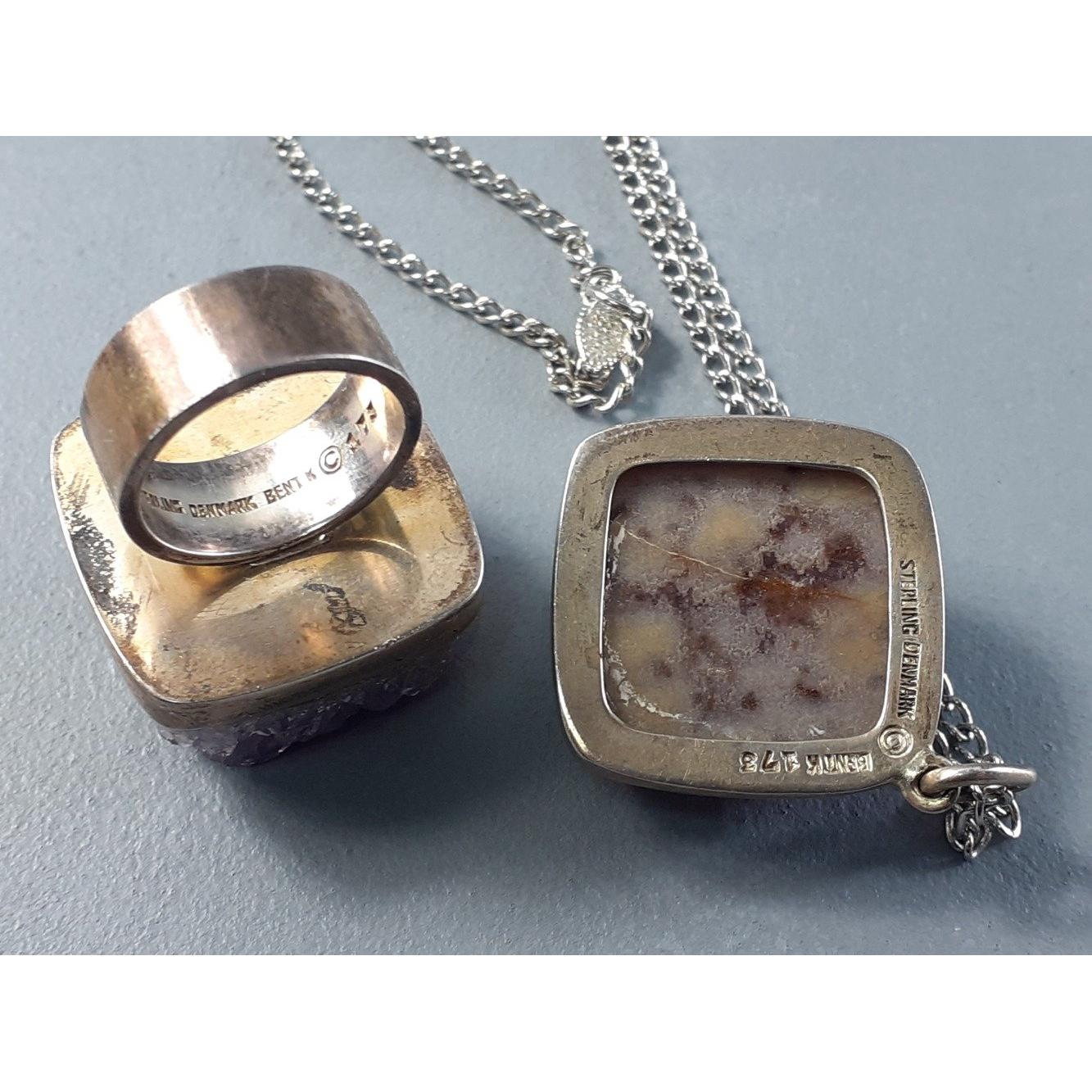 STERLING DENMARK stamped raw amethyst ring and pendant on chain. Stamped BENT K (BENT KNUDSEN)