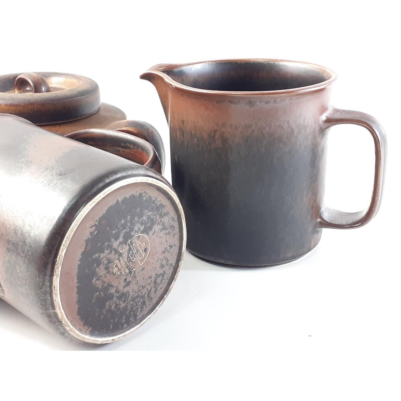 A collection of 1975 retro Arabica Finland Ruska. Teapot, coffee pot, and a medium and large milk jugsApprox 4 pieces