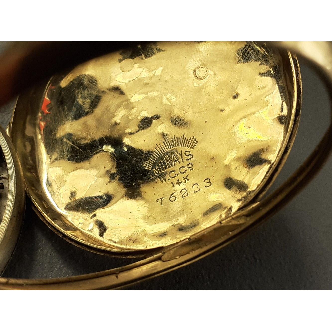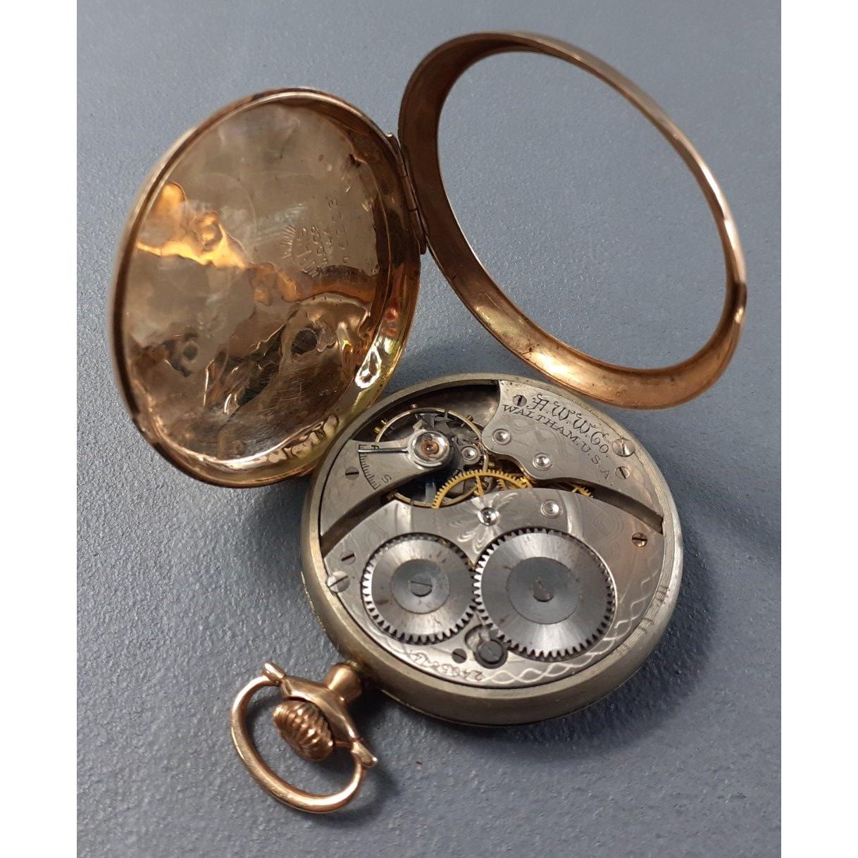 An American A.W.W. Waltham pocket watch in poor condition with 14K marked thin case. No mark to winder. Gross weight including movement 50g approx.