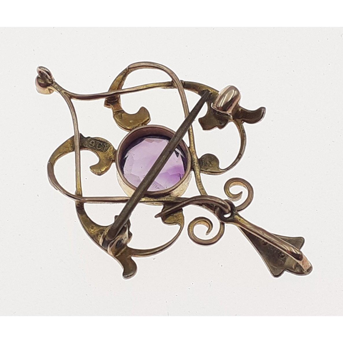 A 9ct stamped pendant with nice central amethyst. 4cm approx, gross weight 3g approx