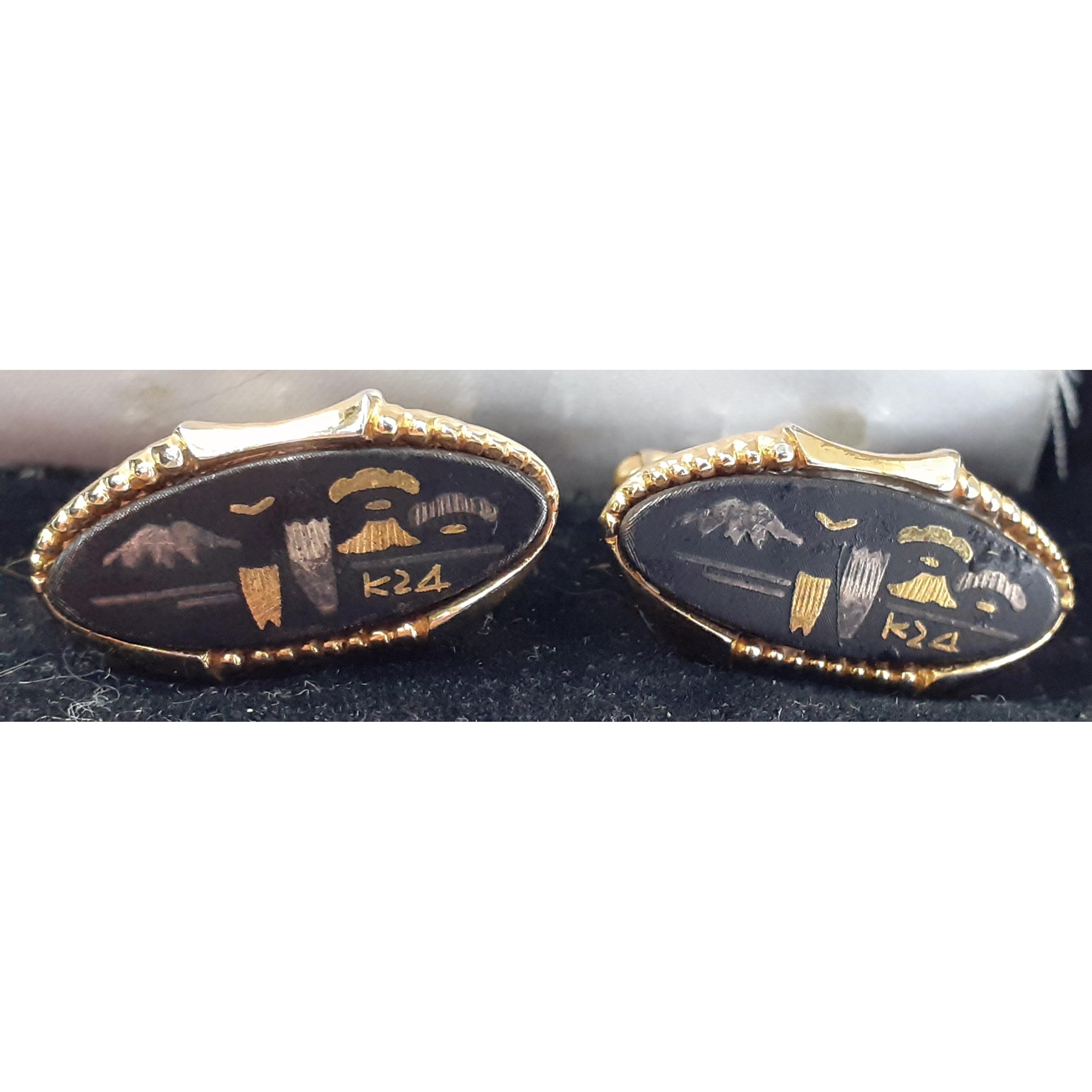 Unusual lacquer cufflinks with Mount Fuji and K24 in gold paint. No makers marks, but intricately detailed, a pretty pair.
