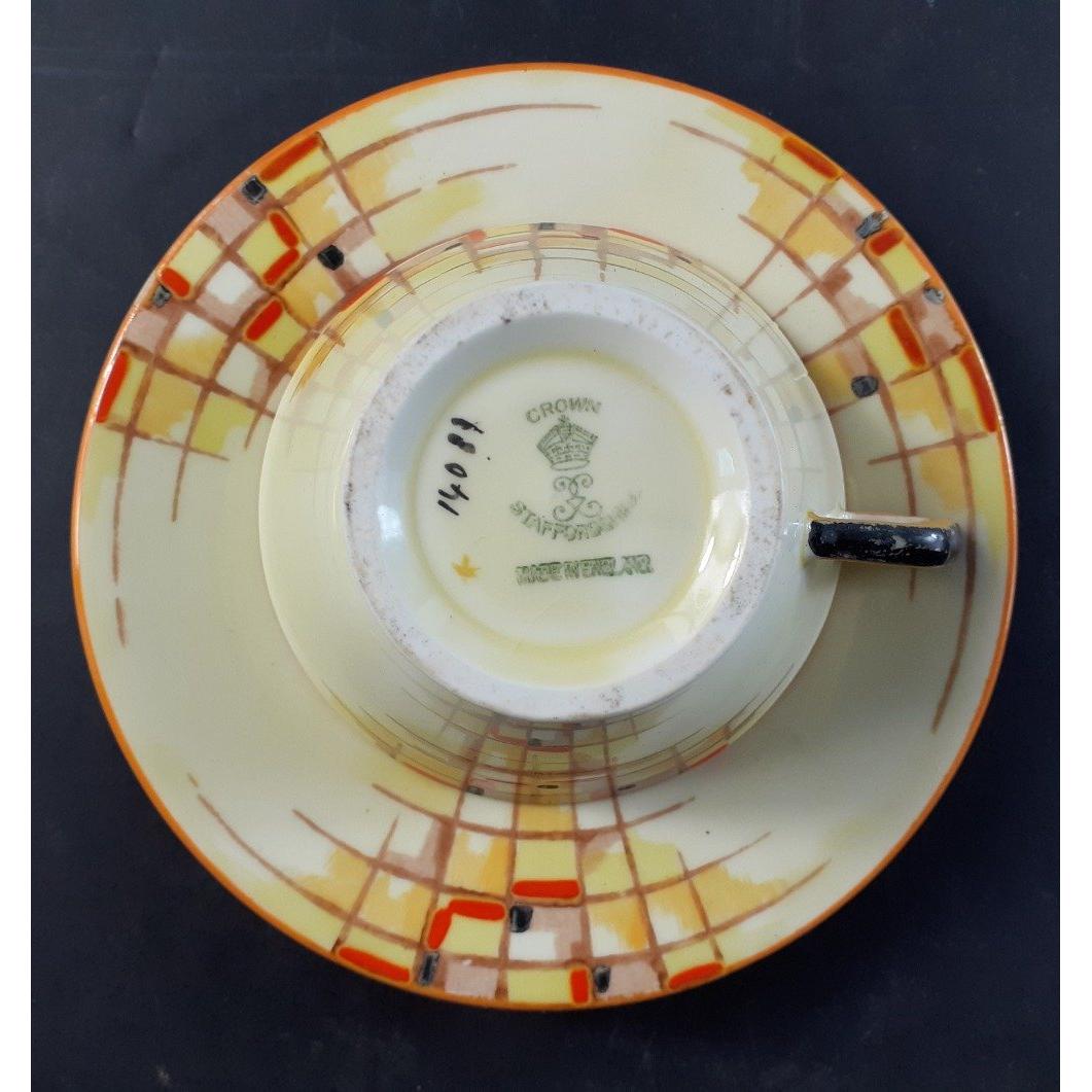 Attractive CROWN STAFFORDSHIRE tea for two set. Complete but one cup with crack, some rubbing to finish but otherwise no cracks or chips.