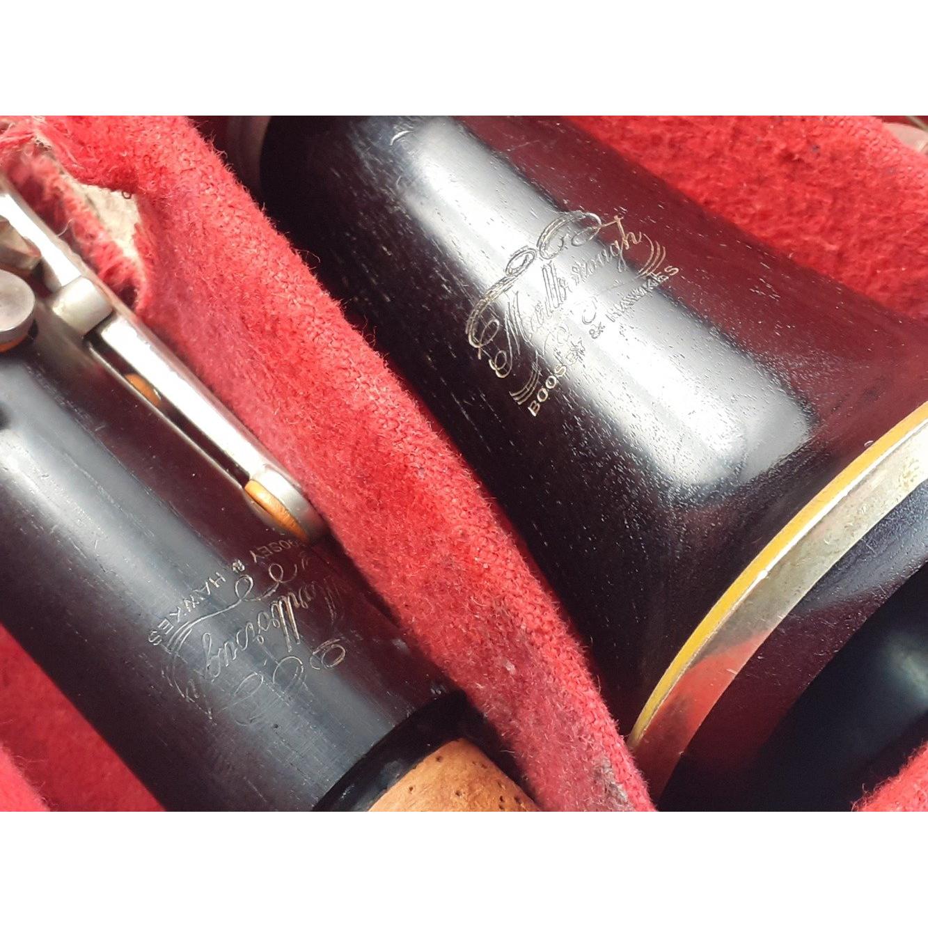 A cased BOOSEY & HAWKES Marlborough wooden clarinet in good complete used condition.
