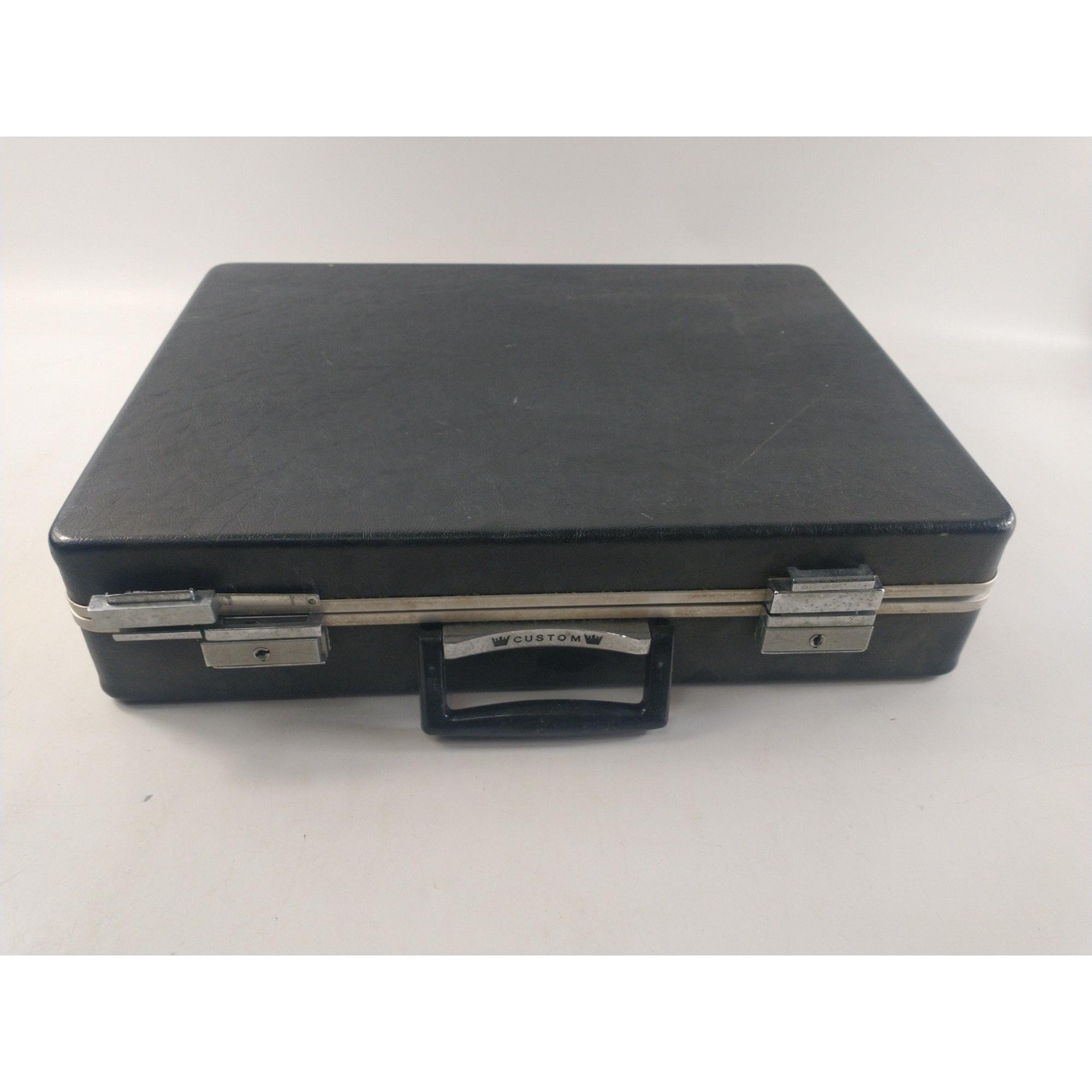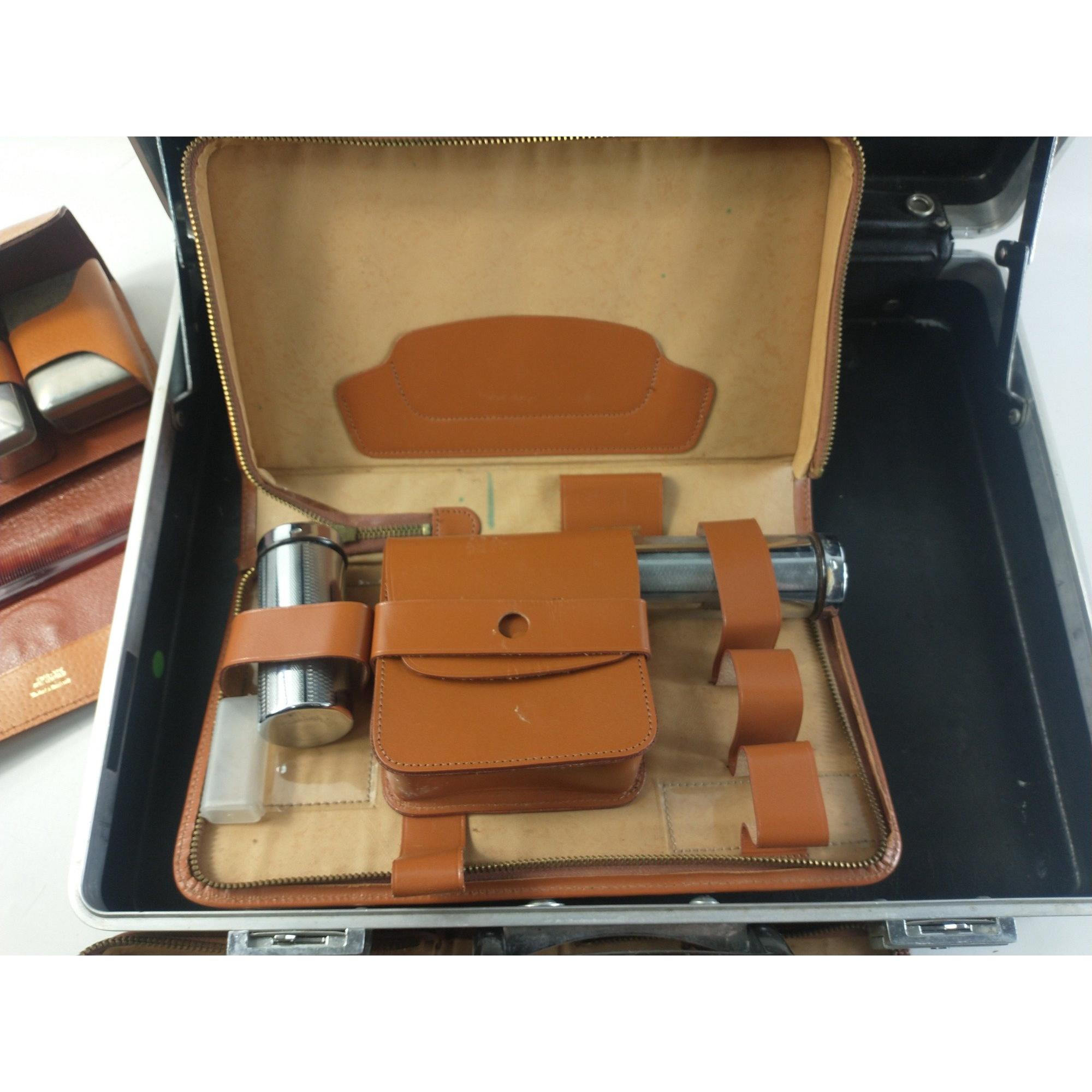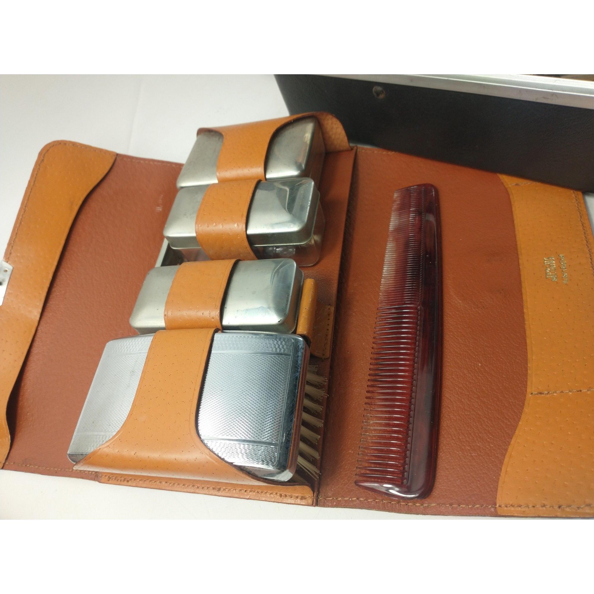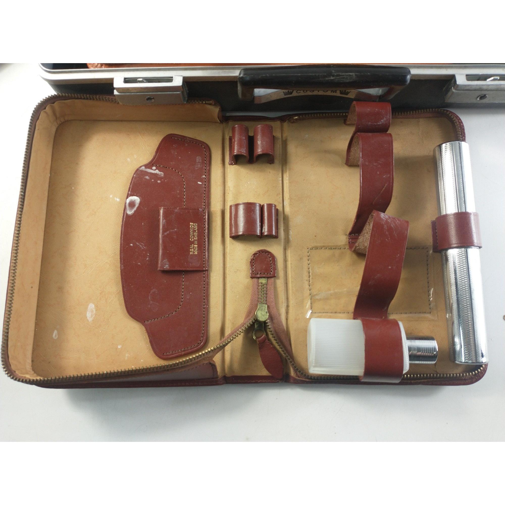 A hard shell custom briefcase containing three gents travel sets. A useful group.