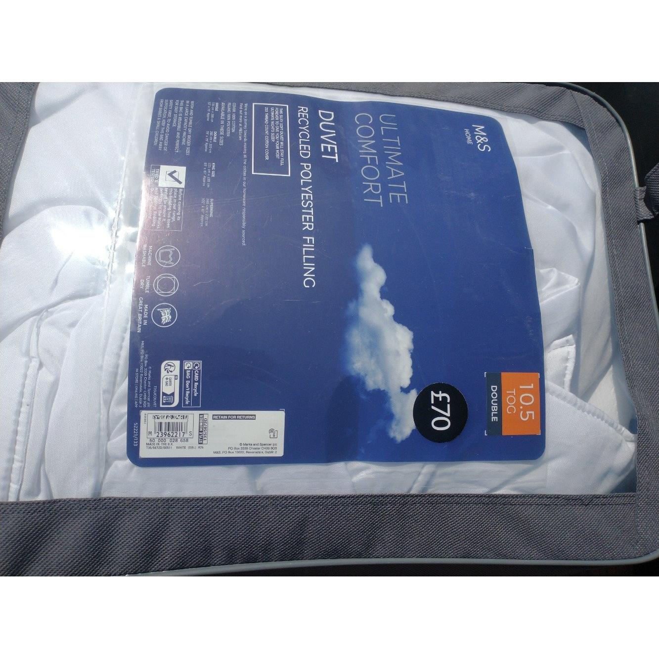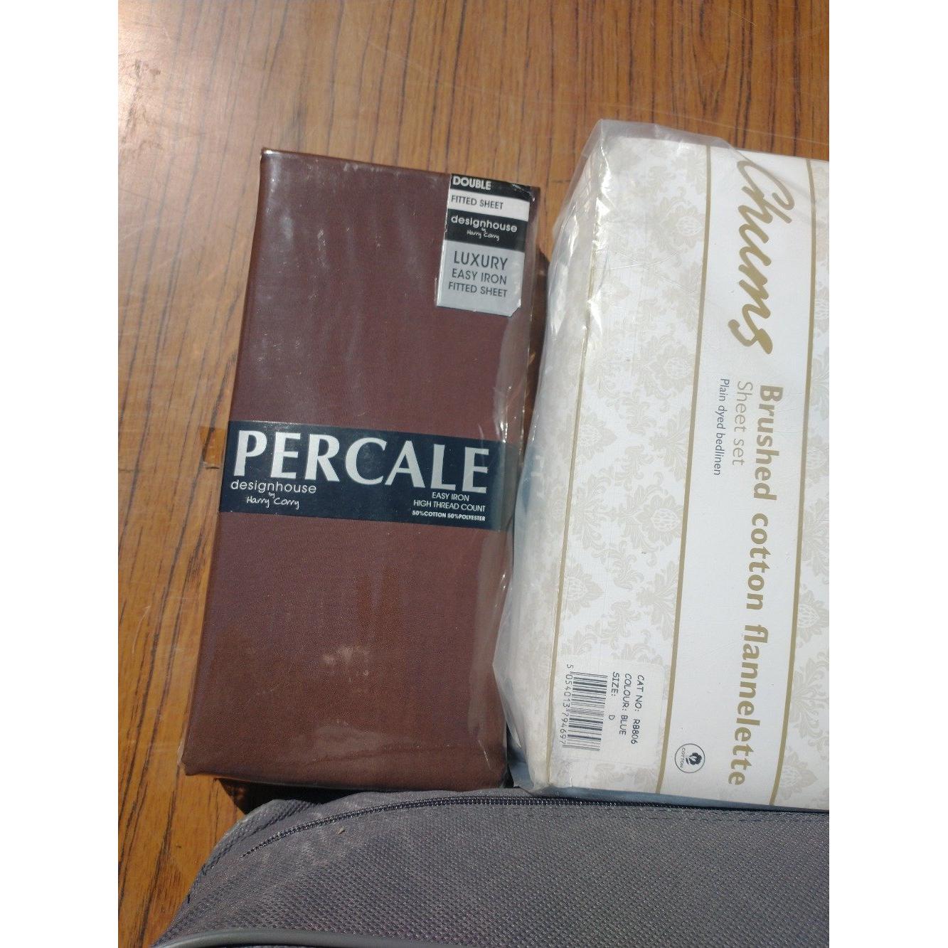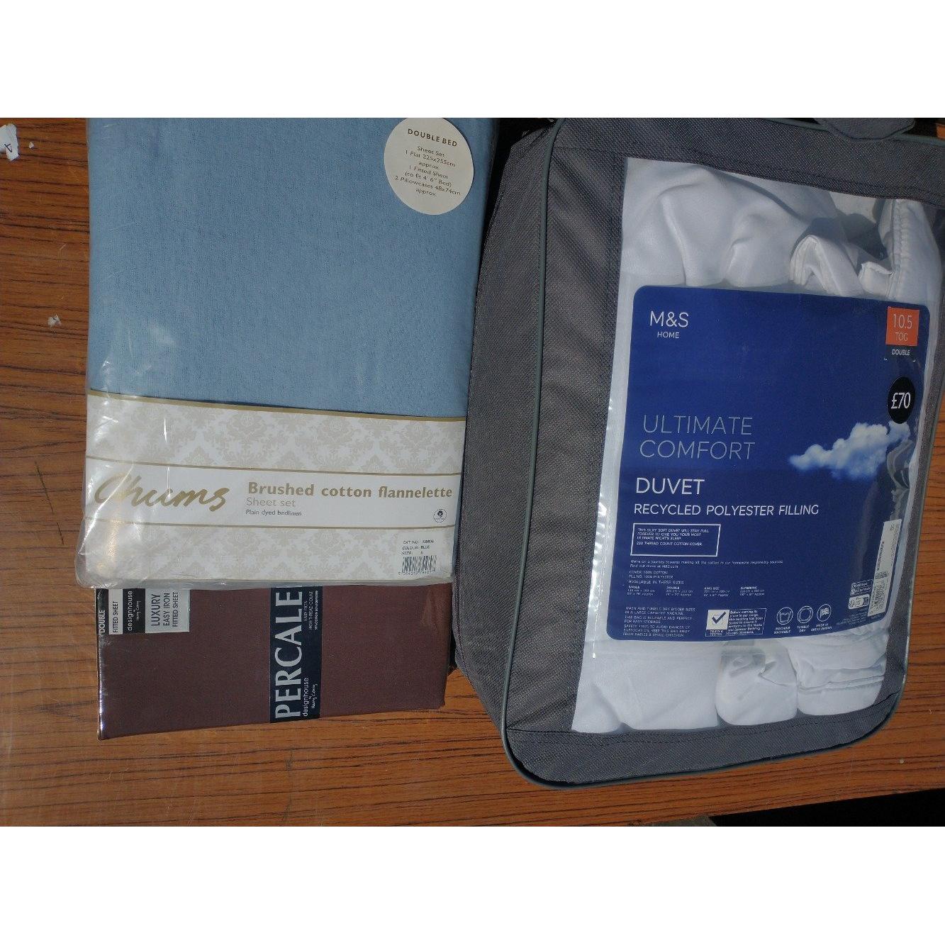 Collection of bed linen to include M&S ultimate comfort 10.5 tog double sized duvet, Chums brushed cotton flannelette size double and PERCALE double fitted sheet