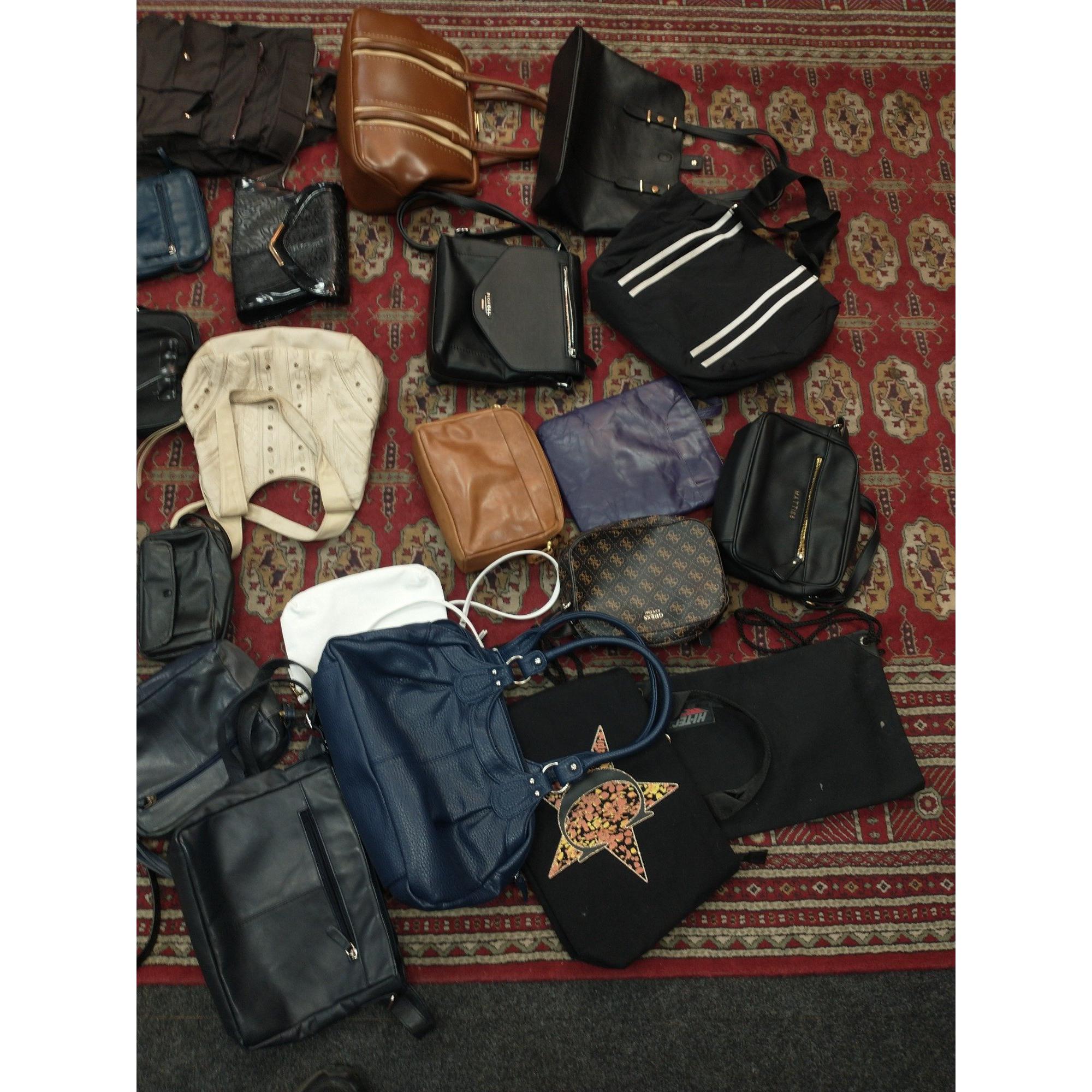 A good selection of useable handbags, many unbranded but most appear to be in good well stored condition.