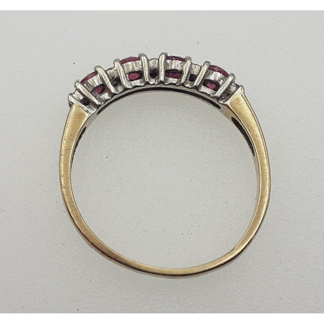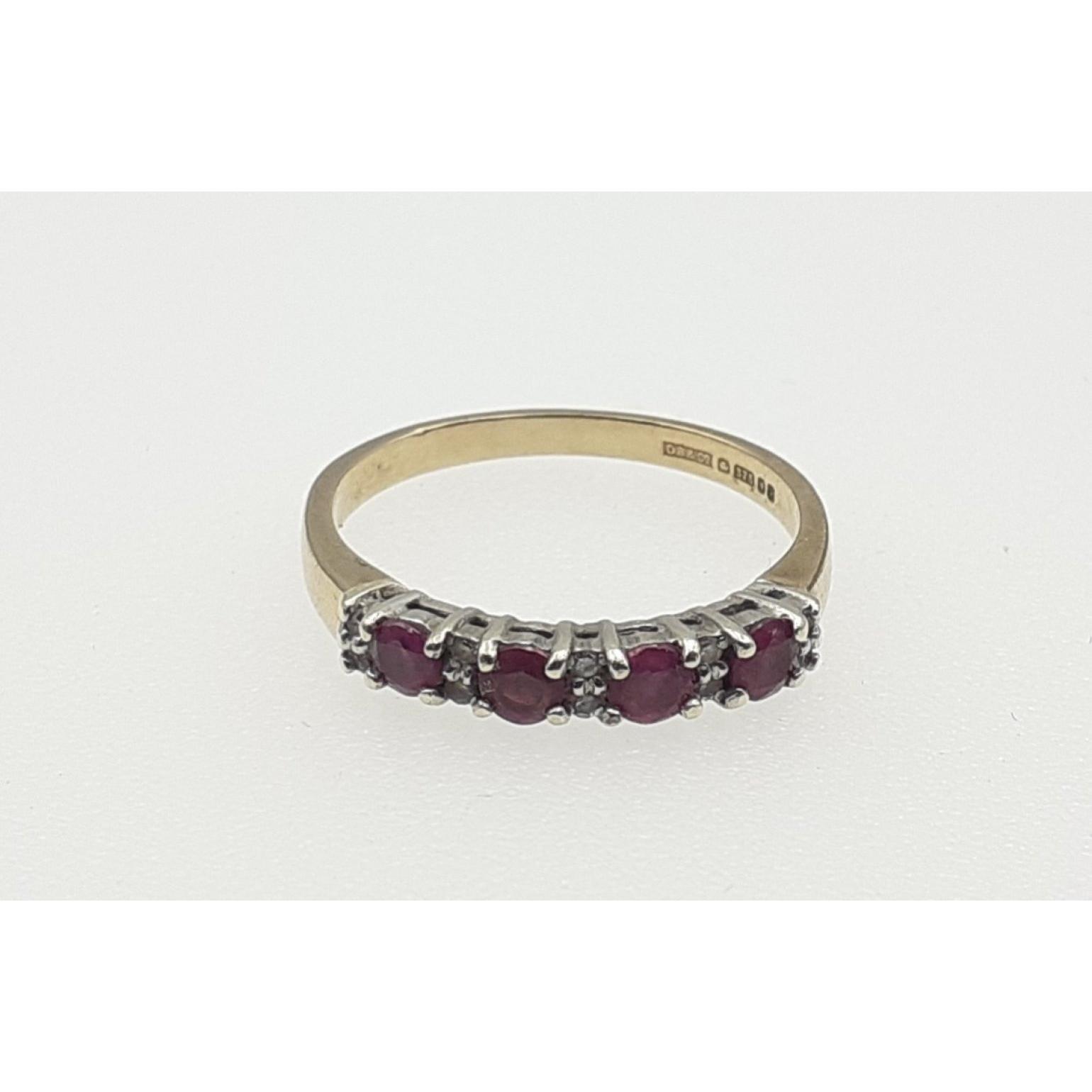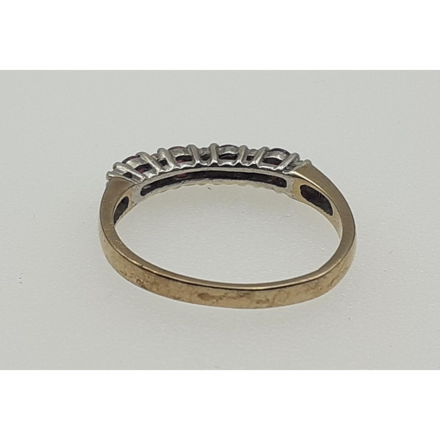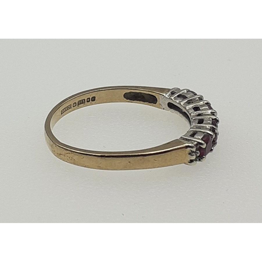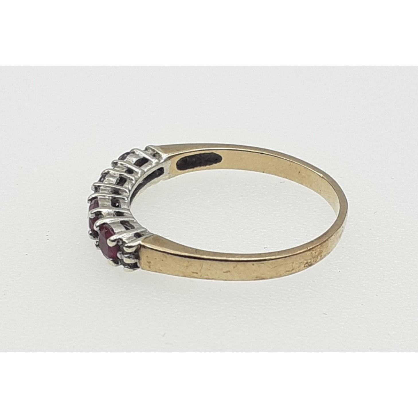A ladies gold half eternity ring fully hallmarked 375, set with 4 red stones and 5 small clear stones. Size O, gross weight 2.06g approxApprox 1 pieces