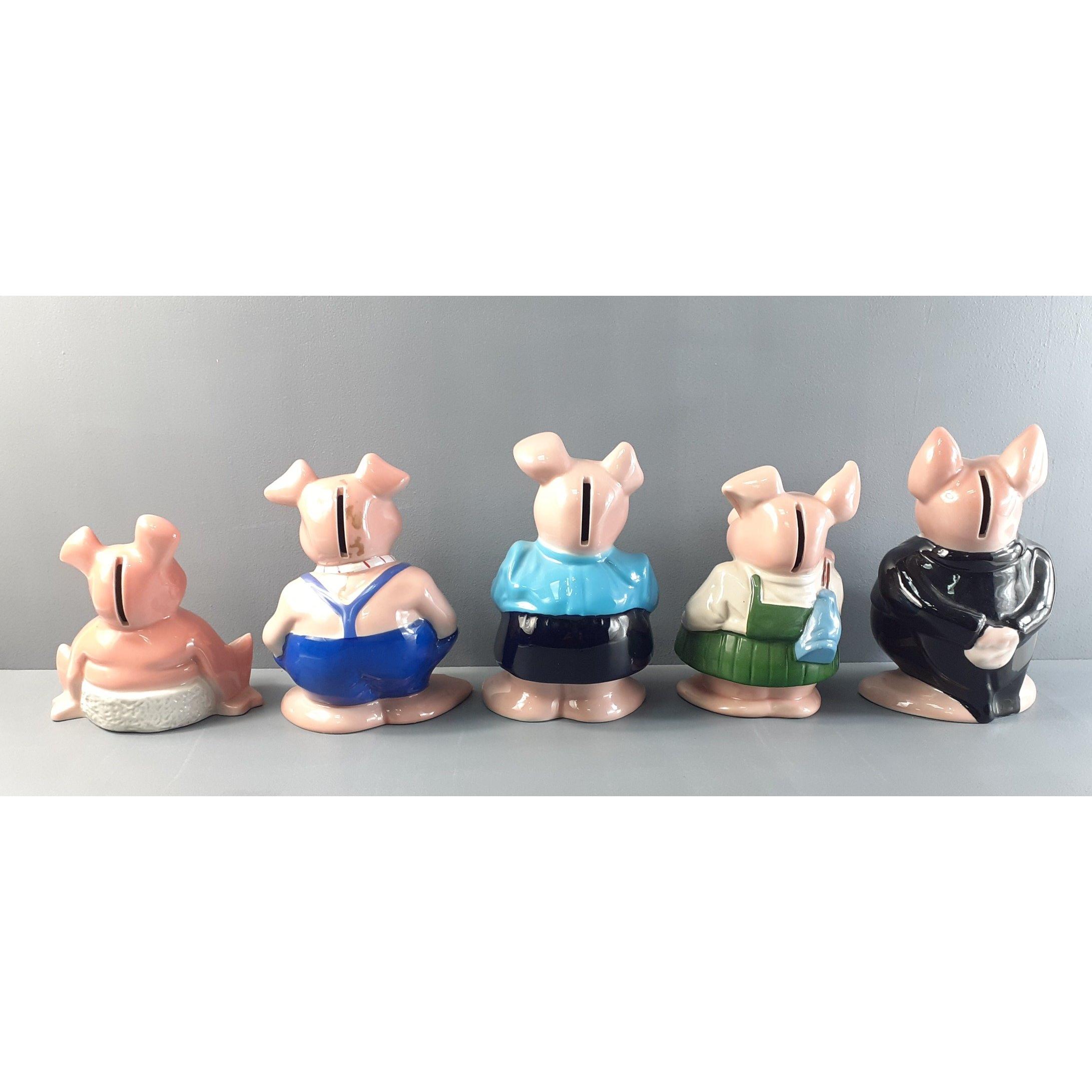 A complete set of five Natwest glazed ornamental ceramic piggy banks by WADE - no chips or signs of damage repair - tallest figure 15cm approx