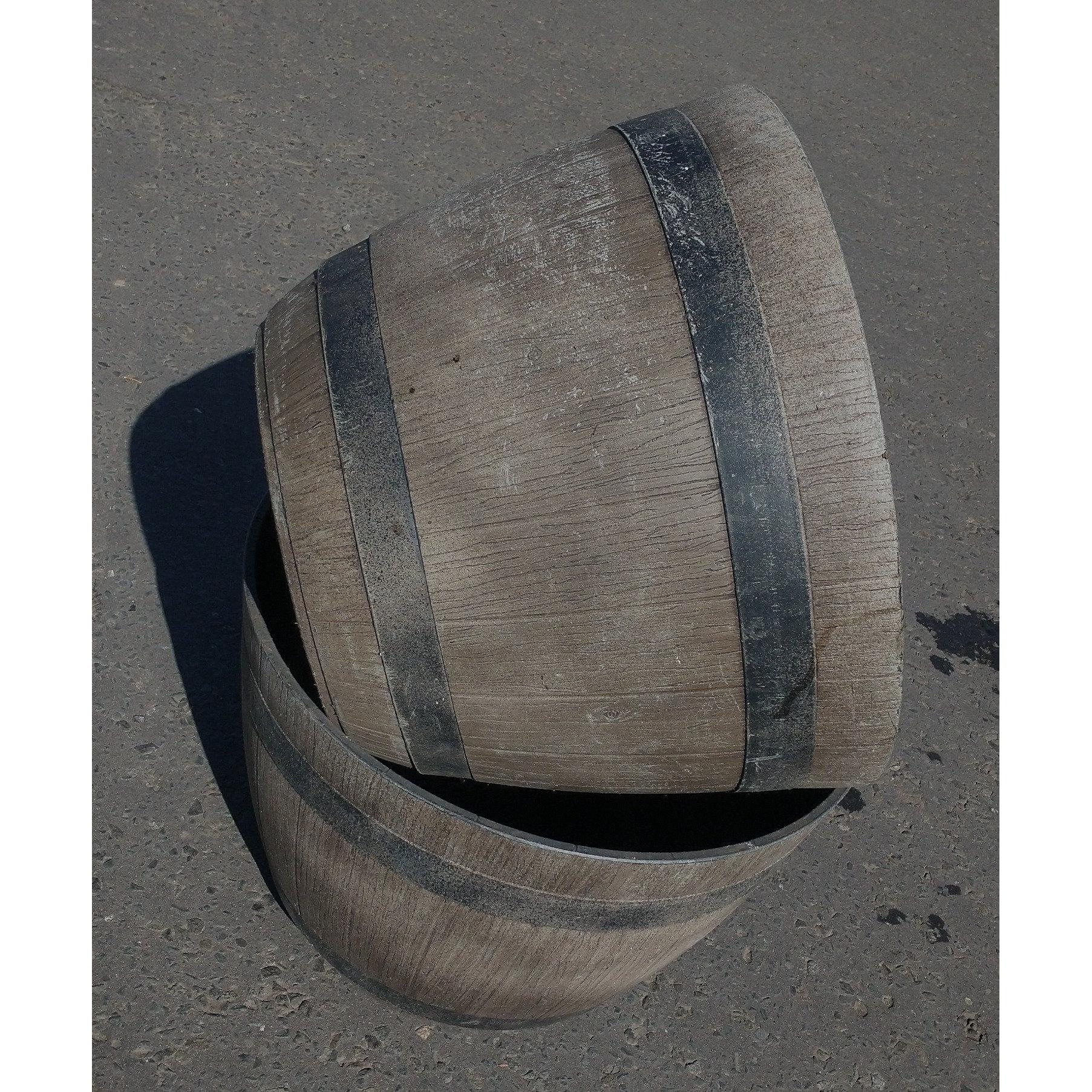 Two resin wood-effect half barrels 55cm diameter x 40cm height. All in good useable conditionApprox 2 pieces