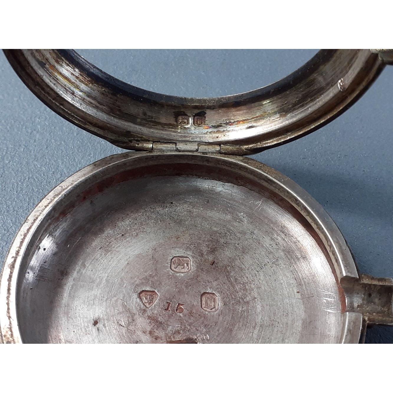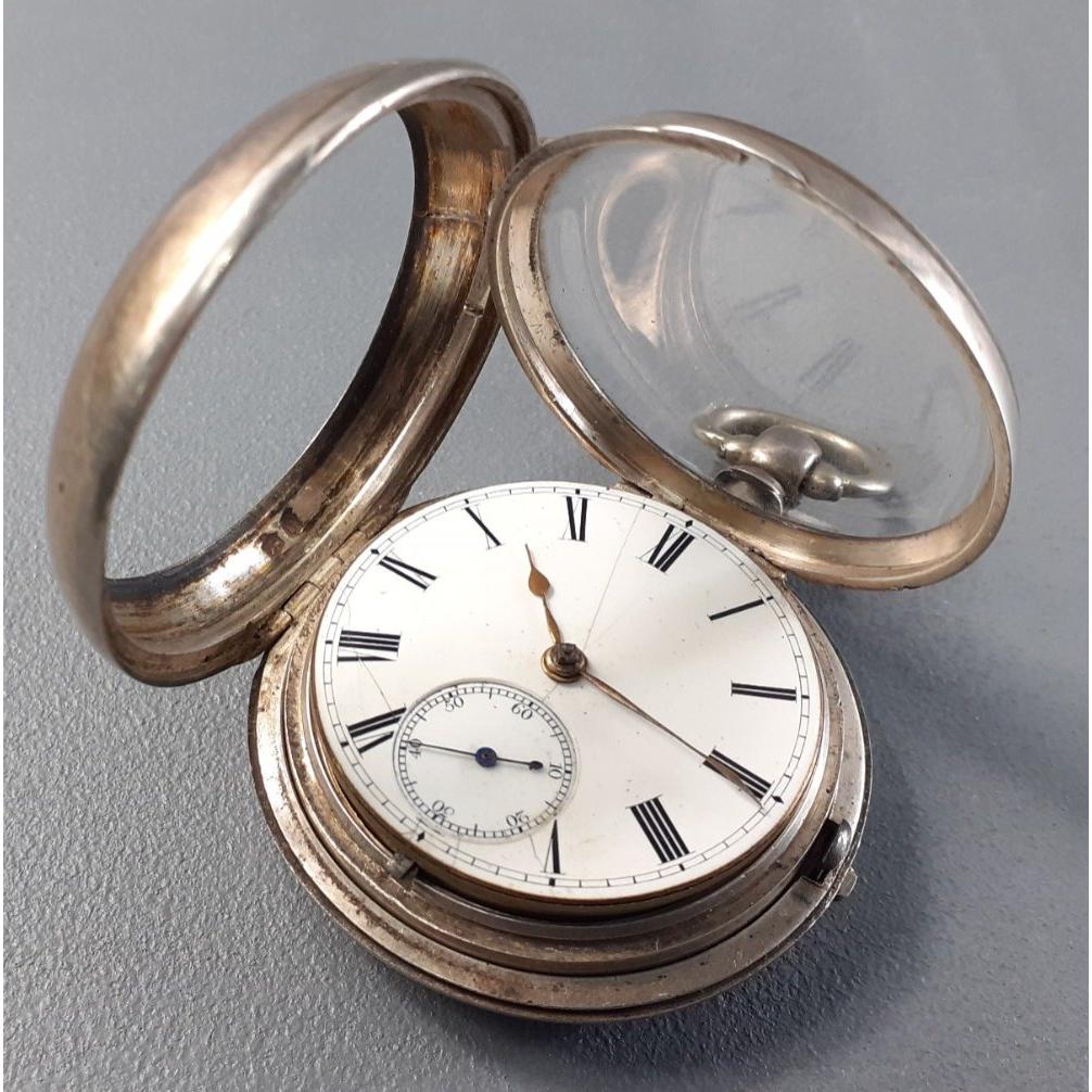 TOP QUALITY VICTORIAN LONDON SILVER HALLMARKED POCKET WATCH c1880's with outer silver London hallmarked case - no maker mark seen, looks like a beautiful inner movement with a blue jewel centre-piece - watch diameter 4cm approx - gross weight 147g approx