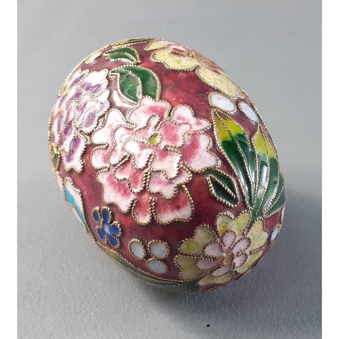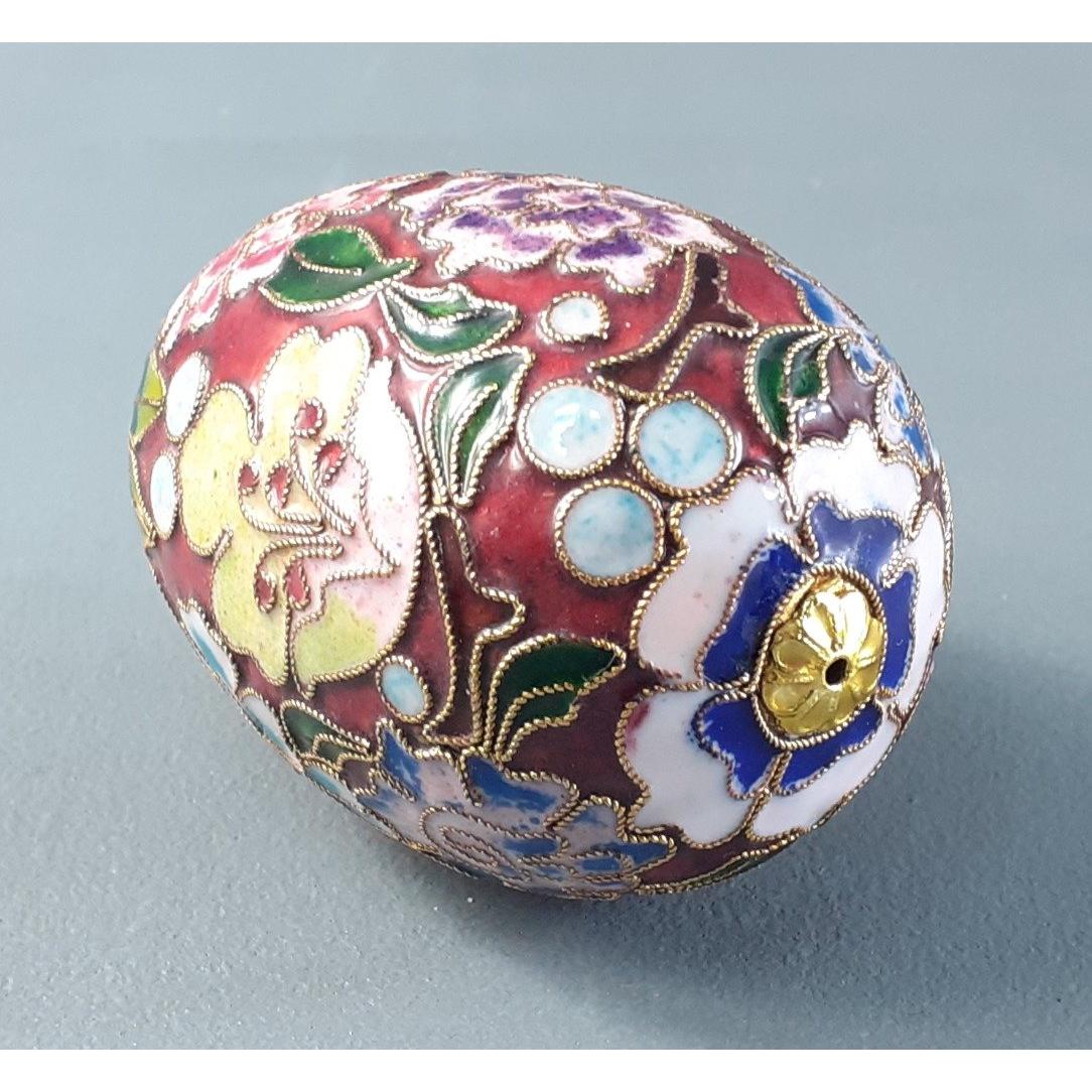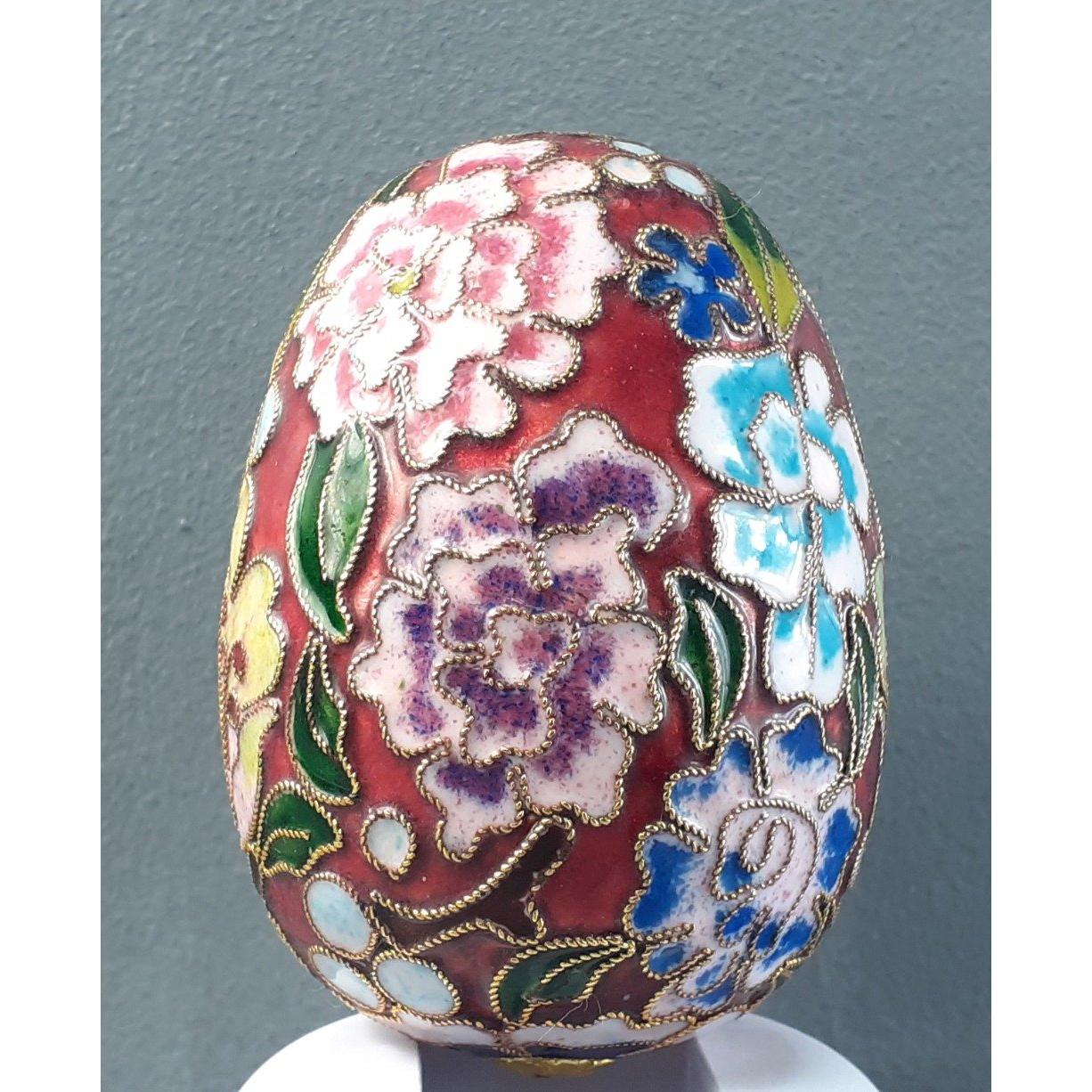 BEAUTIFUL CLOISONNE enamel egg in floral design - dimensions 8cm tall x 6cm diameter at the widest point approx