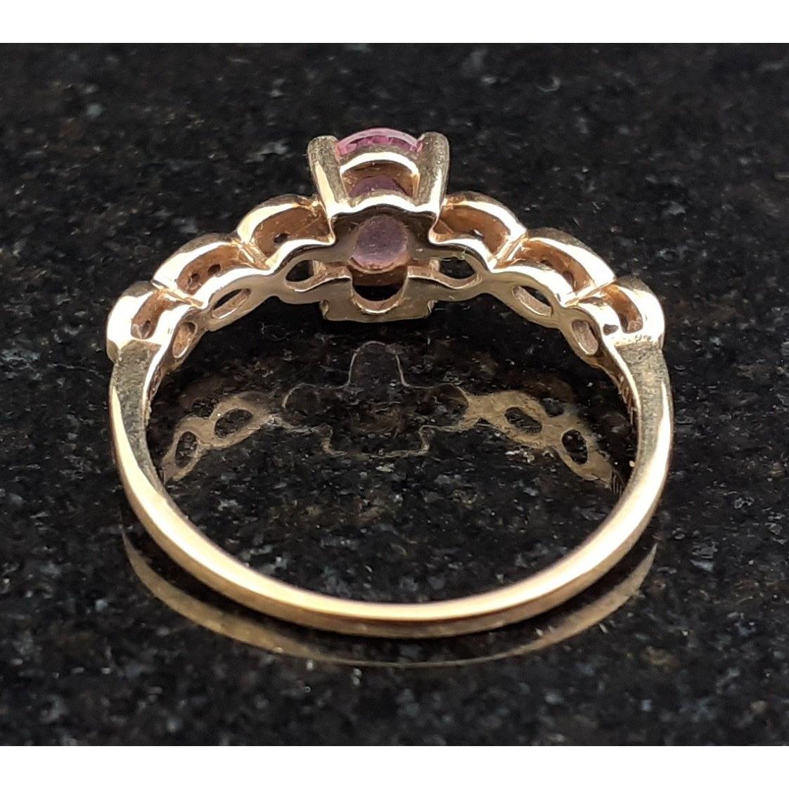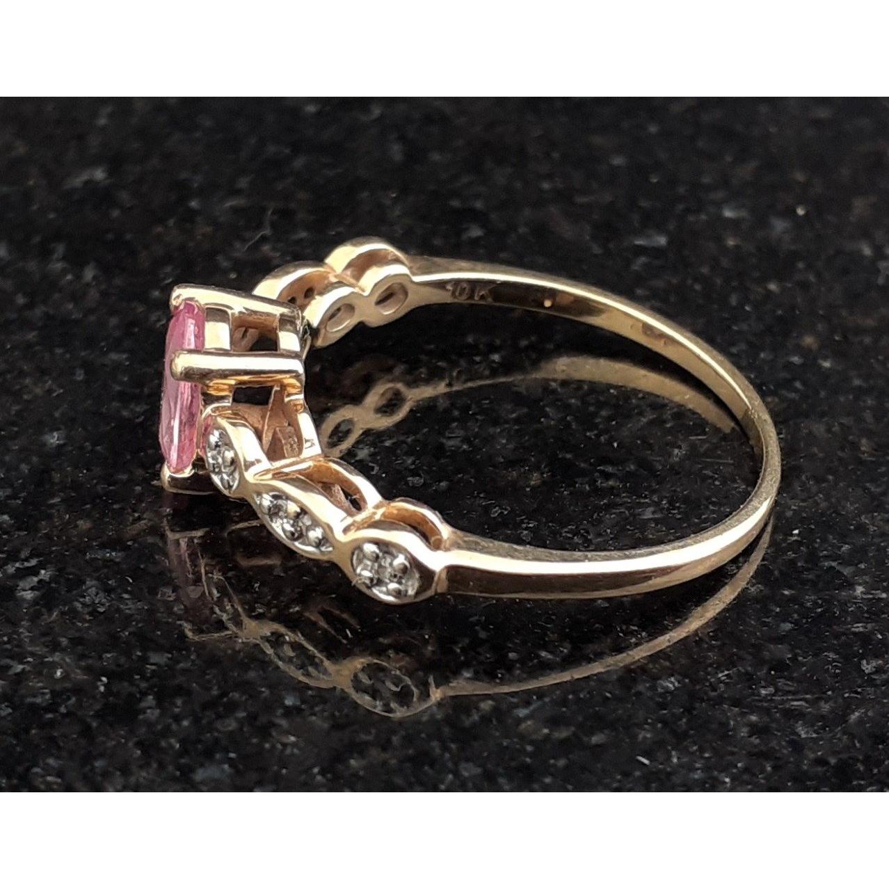 A 10k/375 stamped jaipur PINK SAPPHIRE ring - dimensions of SAPPHIRE 0.5cm x 0.4cm approx - ring size O - gross weight 2g approx