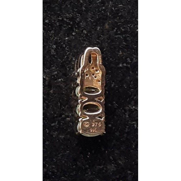 A 375/9k stamped Jaipur Indian LIGHT GREEN SPARKLING OVAL-CUT IDENTICAL SIZED EMERALDS (0.5cm x 0.3cm each stone approx) pendant with tiny chipped white stones on the link - gross weight 2.49g approx