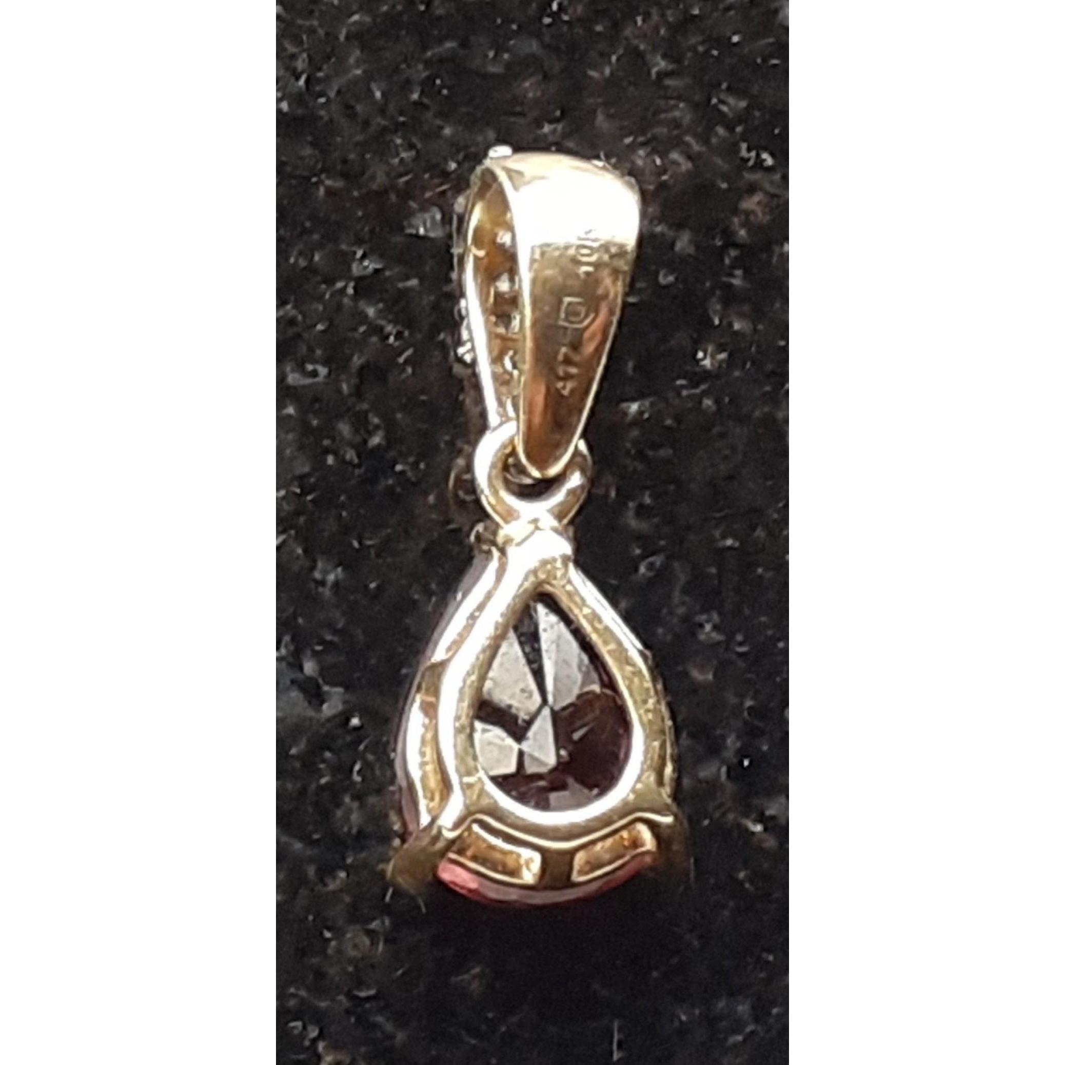 A 10k stamped Jaipur Indian PURPLE SPARKLING AMETHYST heart-cut form colourful pendant (gem height 0.6cm x 0.5cm width at the base approx) pendant with tiny chipped white stones on the link - gross weight 0.93g approx