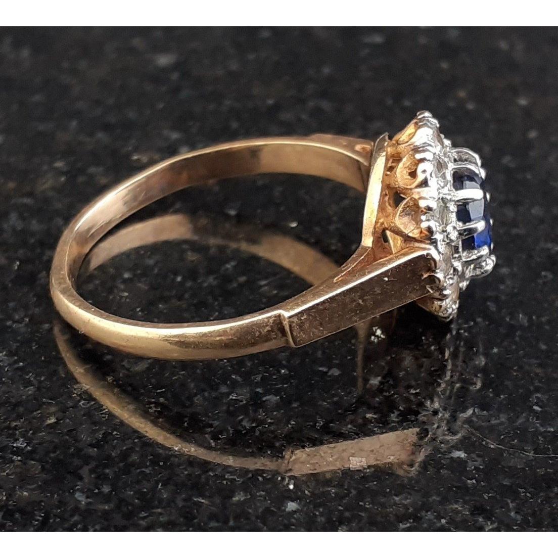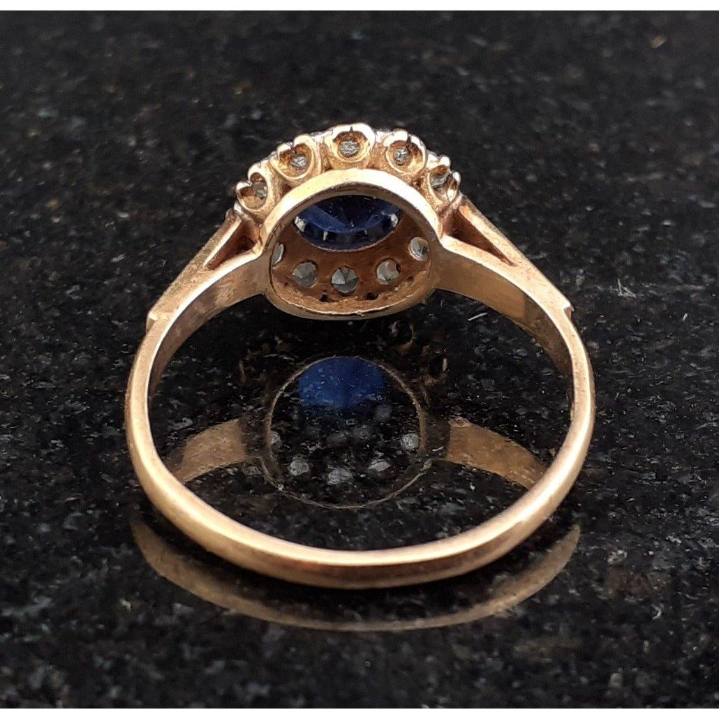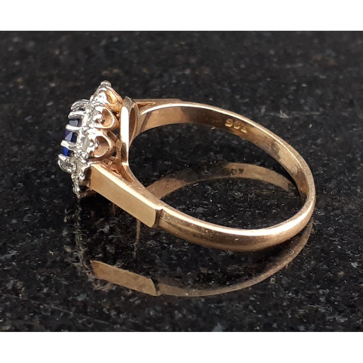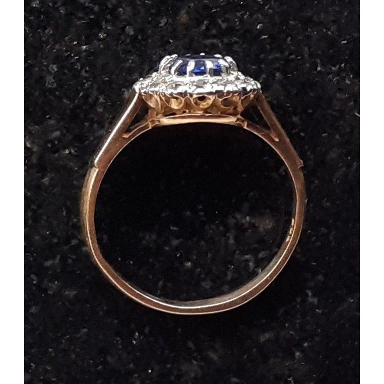 A FABULOUS round-cut SAPPHIRE and white stones ring gem stone, stamped 9ct dimensions are 0.5cm approx - ring size O - weight gross 2.45g approx