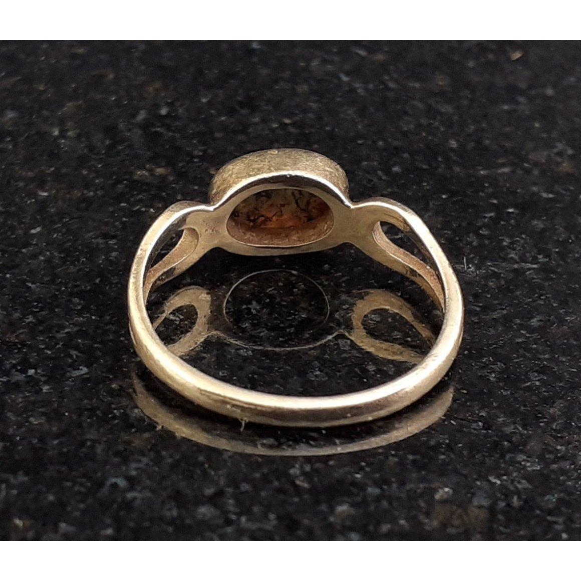 A 375 stamped possibly amber ring - ring size J - gross weight 1.55g approx