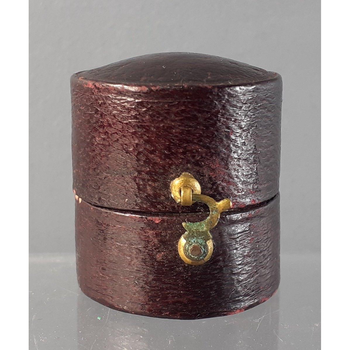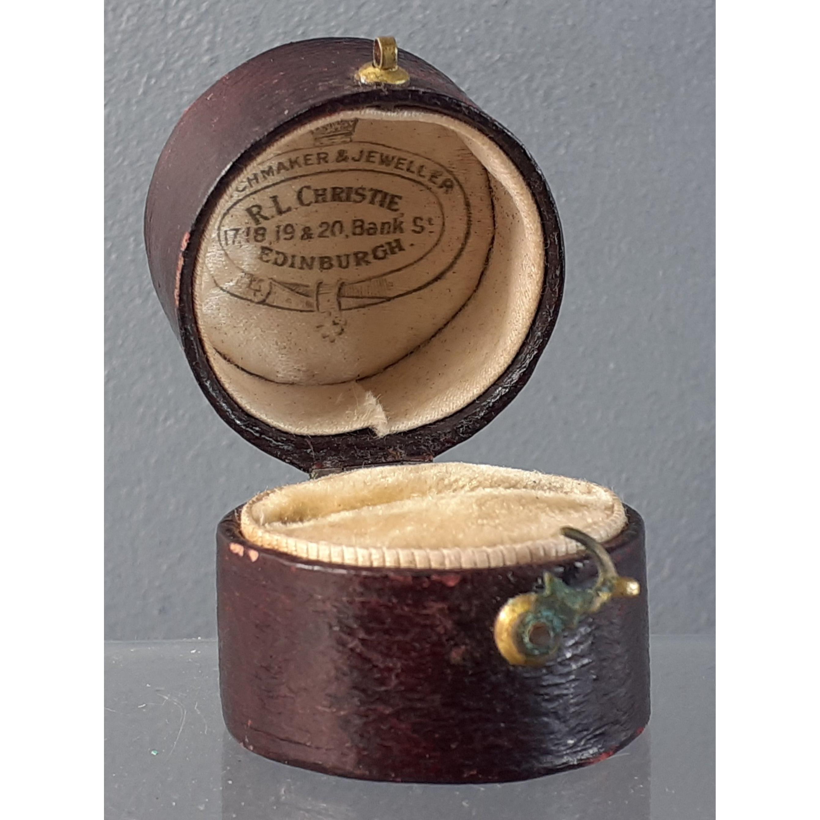 A nice wee VINTAGE jewellers ring box RL CHRISTIE of Bank St Edinburgh in brown leather with its catch intact - diameter 2.8cm x height 3cm approx