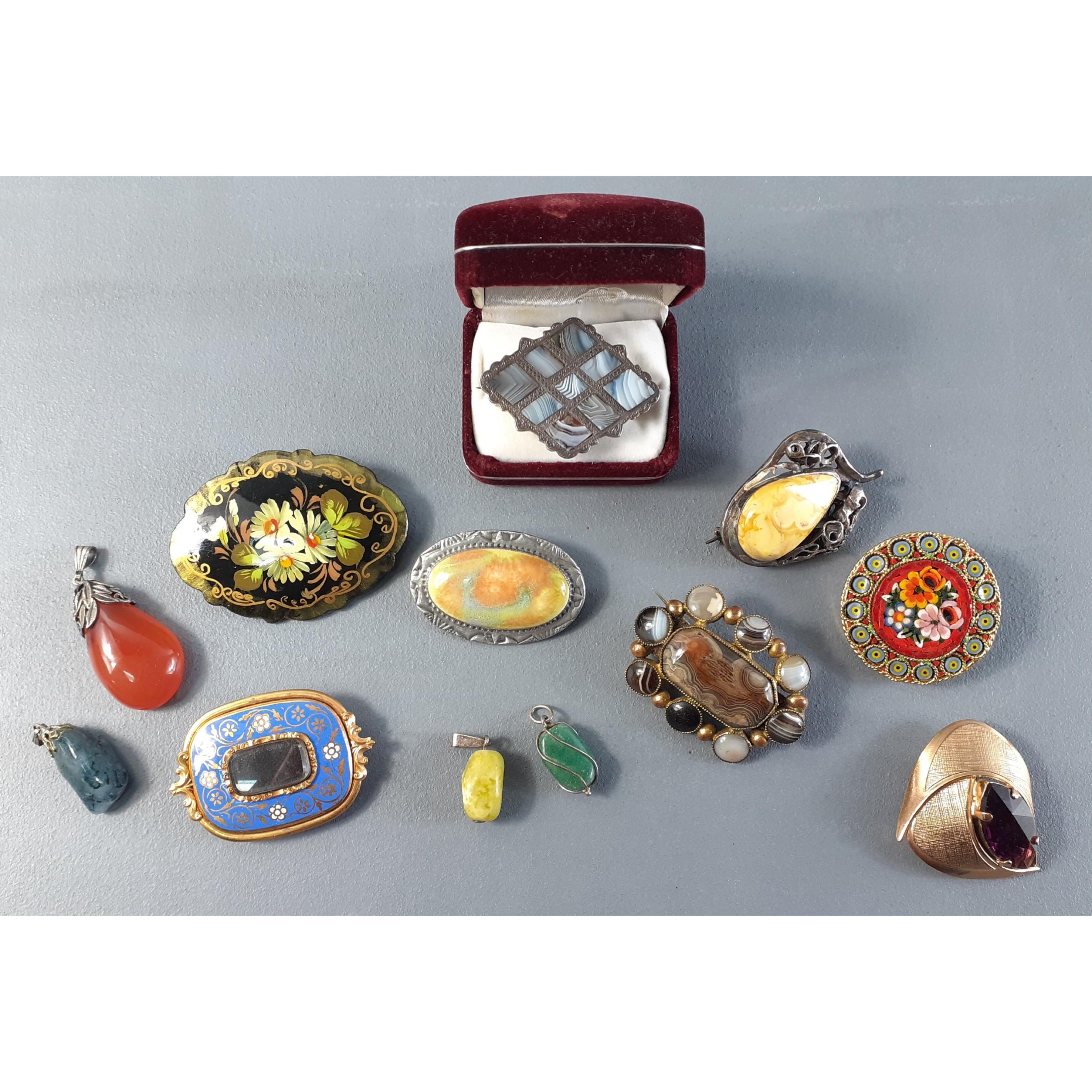 A collection of VINTAGE costume jewellery to include brooches, pendants, and an interesting micro-mosaic brooch