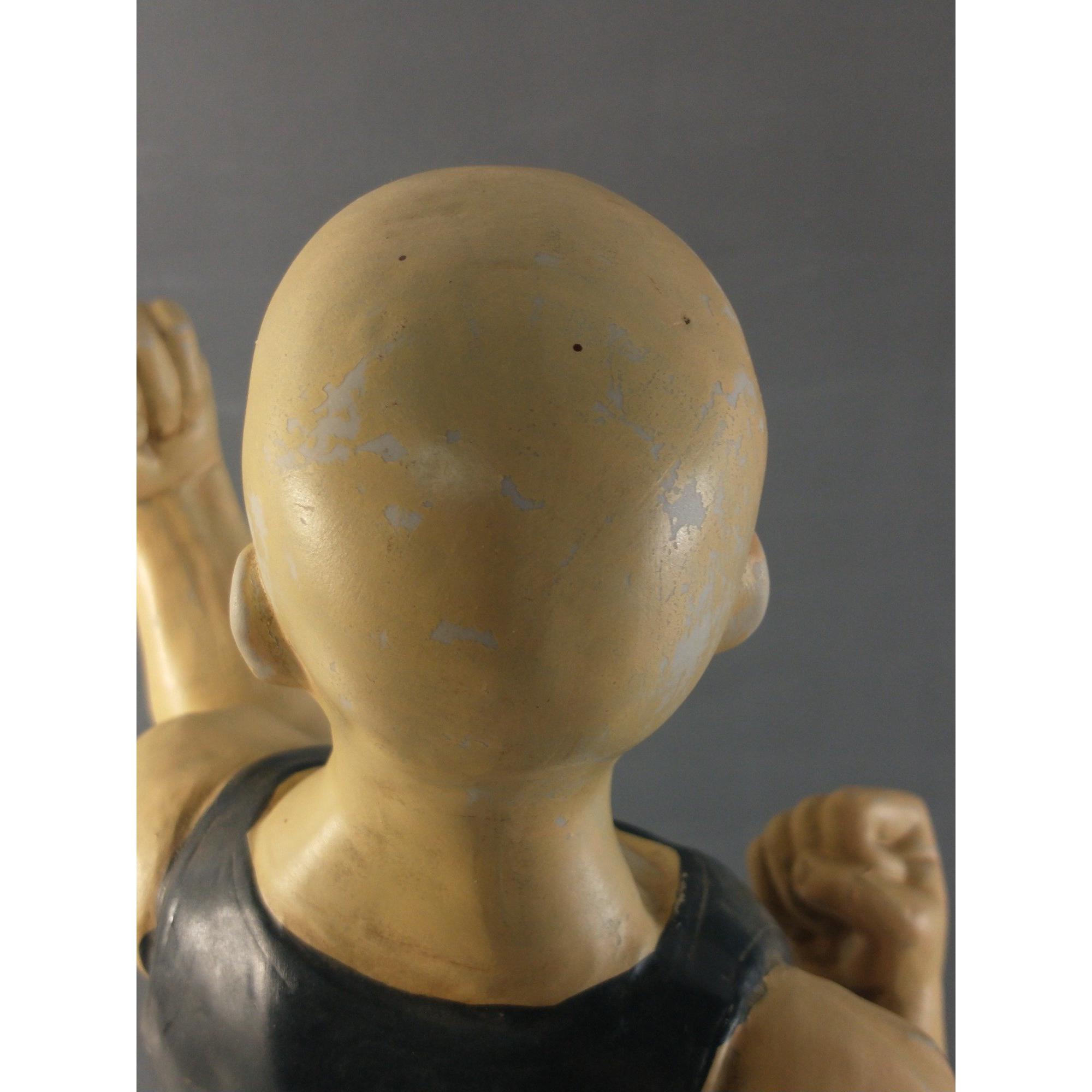 A large pottery boxing figure - this was in a pub for many years - there is a historical repair to the base, height 58cm x 28cm base width x 11cm depth approx