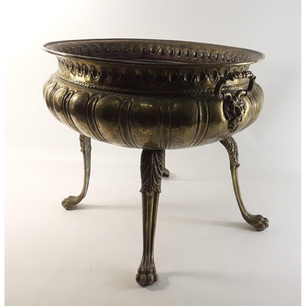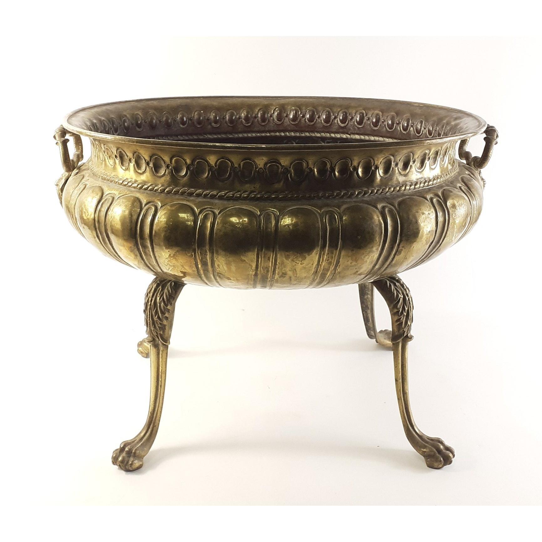 Summer evening entertainment - impress your guests with this vintage twin-handled brass wine cooler with lion claw feet measuring 52 x 44 x 39cm approxApprox 1 pieces