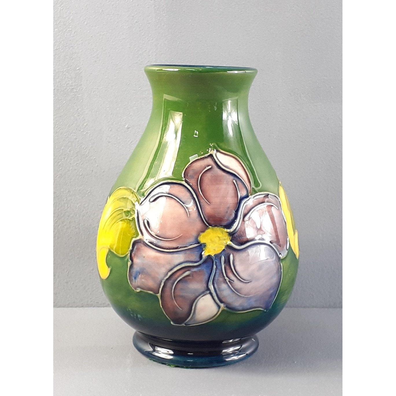 A MOORCROFT hibiscus vase on a dark green background standing 15cm high approx. No damageApprox 1 pieces
