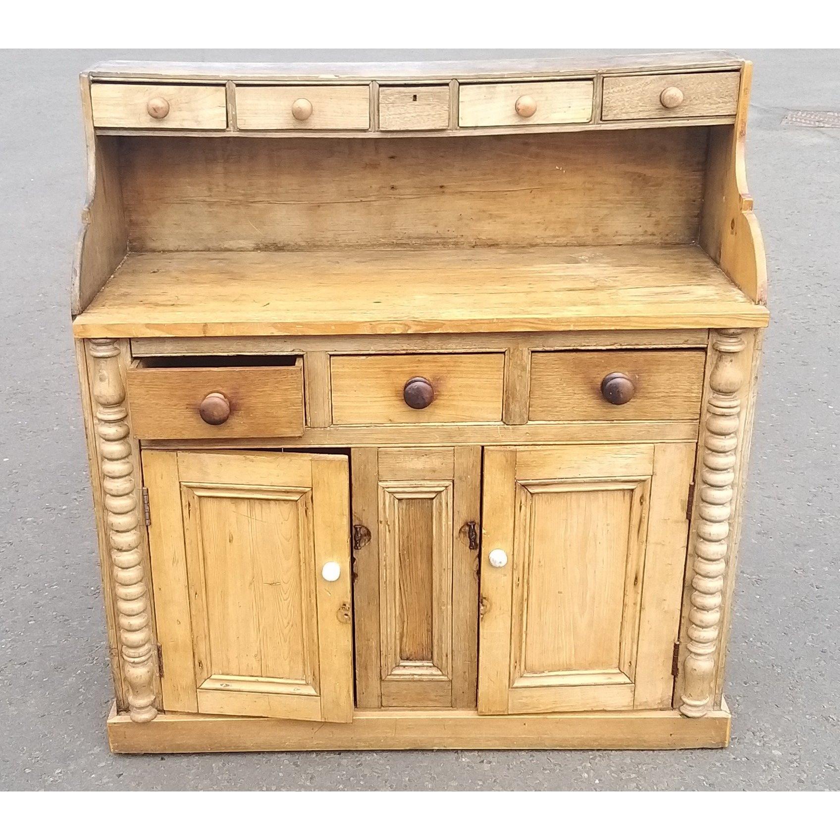 FABULOUS PATINA - Late GEORGIAN/EARLY VICTORIAN SCOTTISH pine dresser with three drawers and two cupboard doors with five further smaller drawers for storing valuable 'nick-nacks'