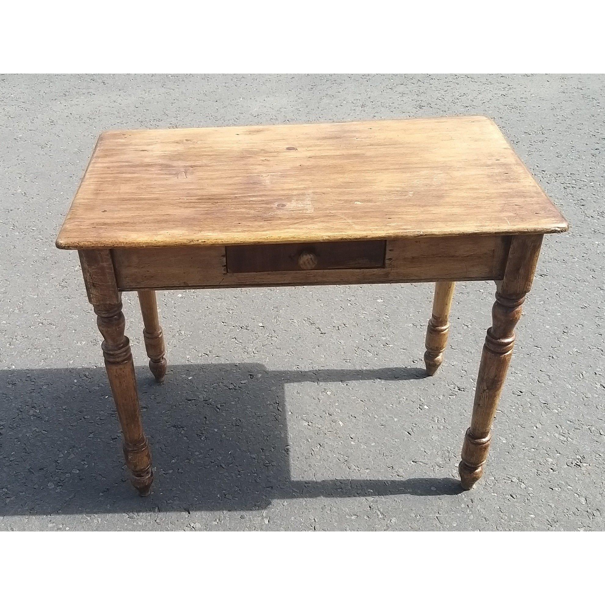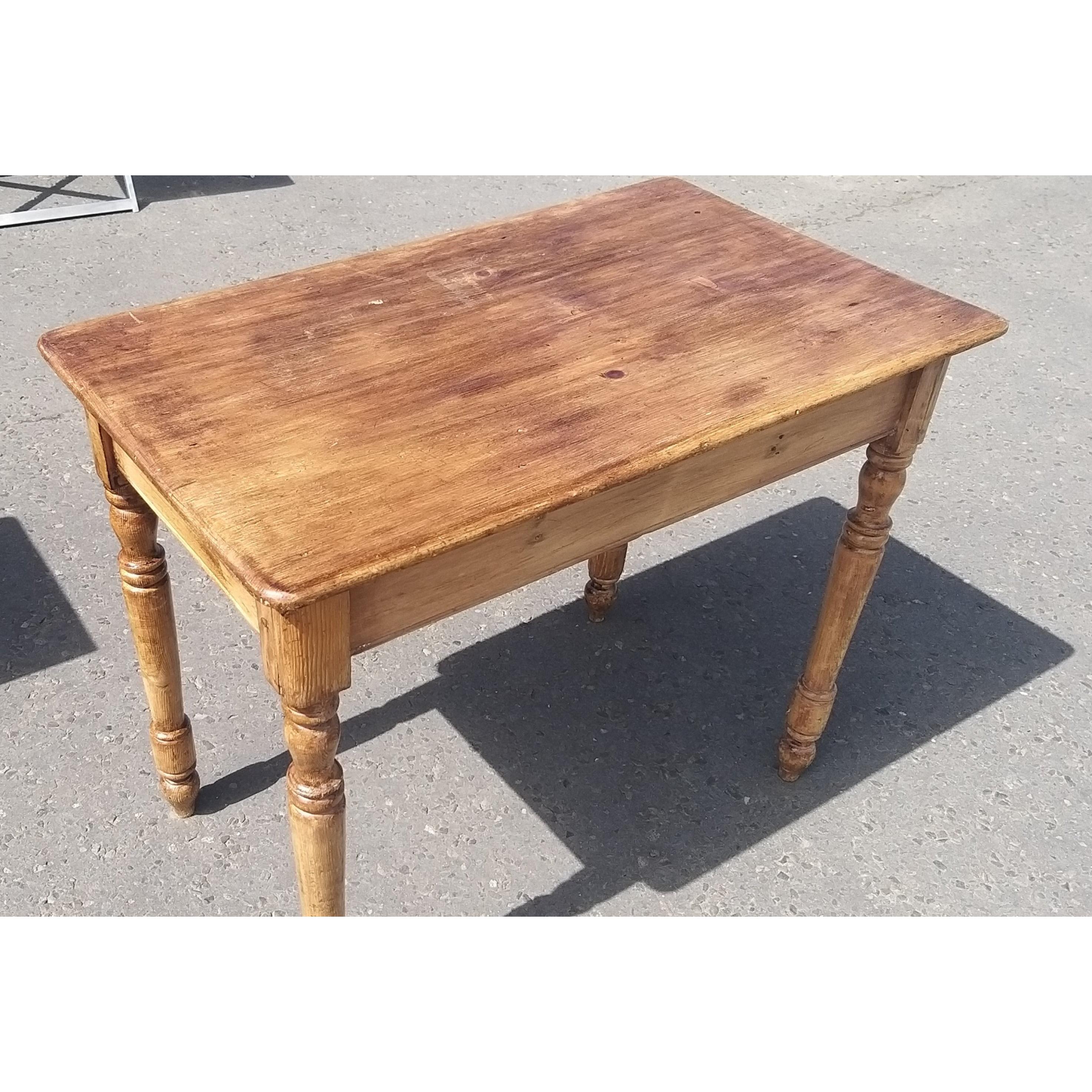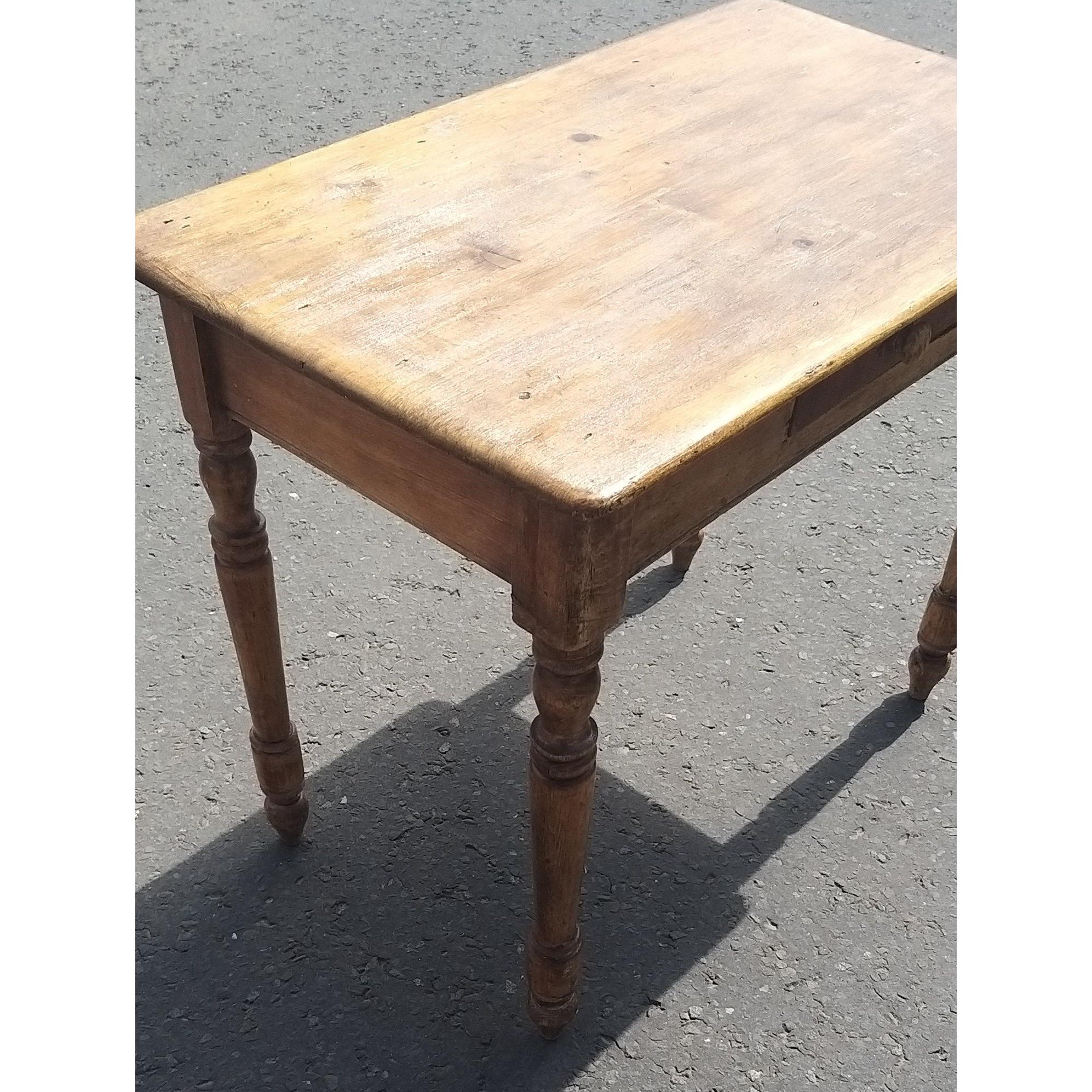 c1900 ANTIQUE small pine kitchen or dining table raised on turned legs - dimensions 97cm width x depth 26cm x height 30cm approx