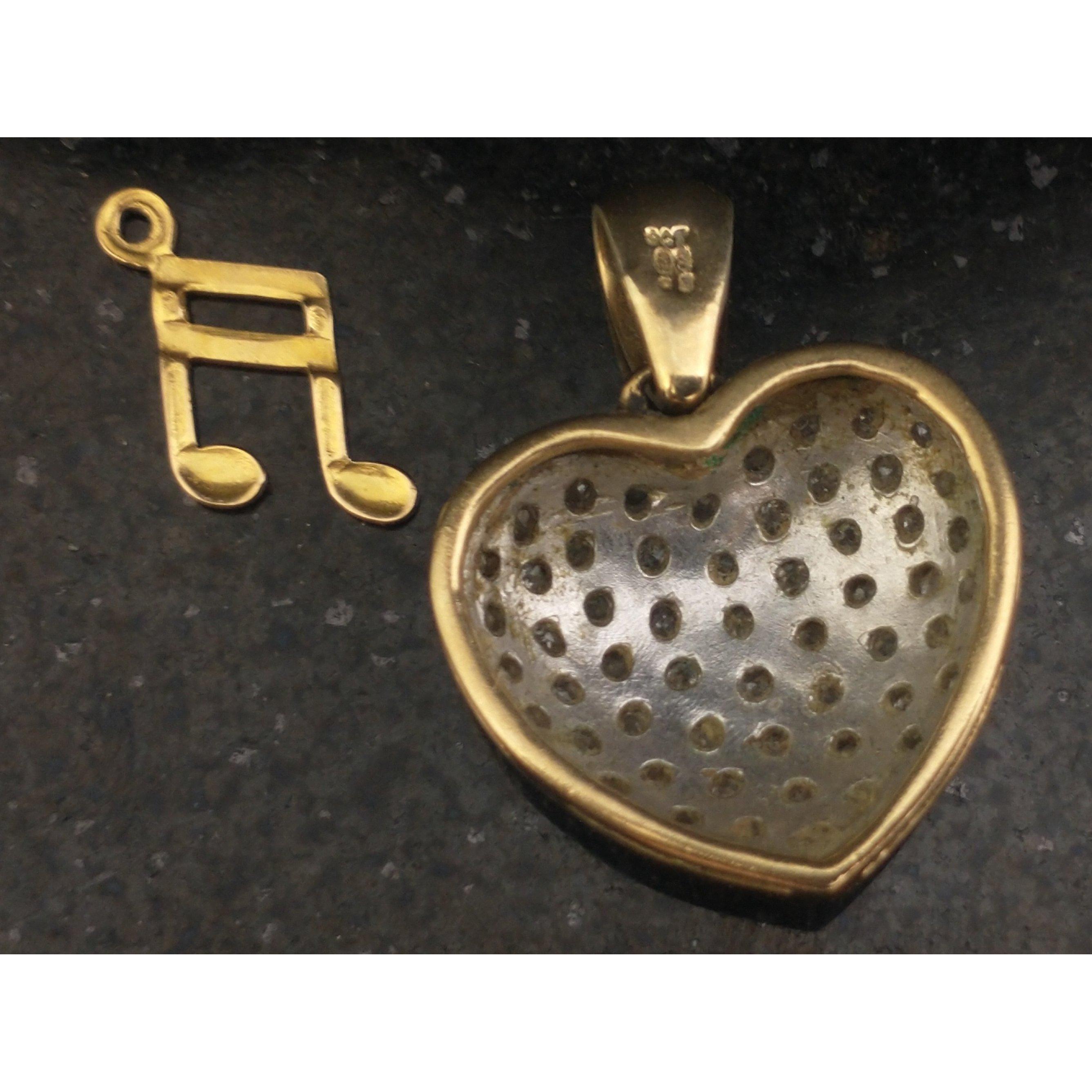 BLING IS THE WORD - A 9ct stamped loveheart studded with diamond(tested) chips pendant weight - gross 4g approx - also a small charm 'musical note' weight 0.2g approx Approx 2 pieces