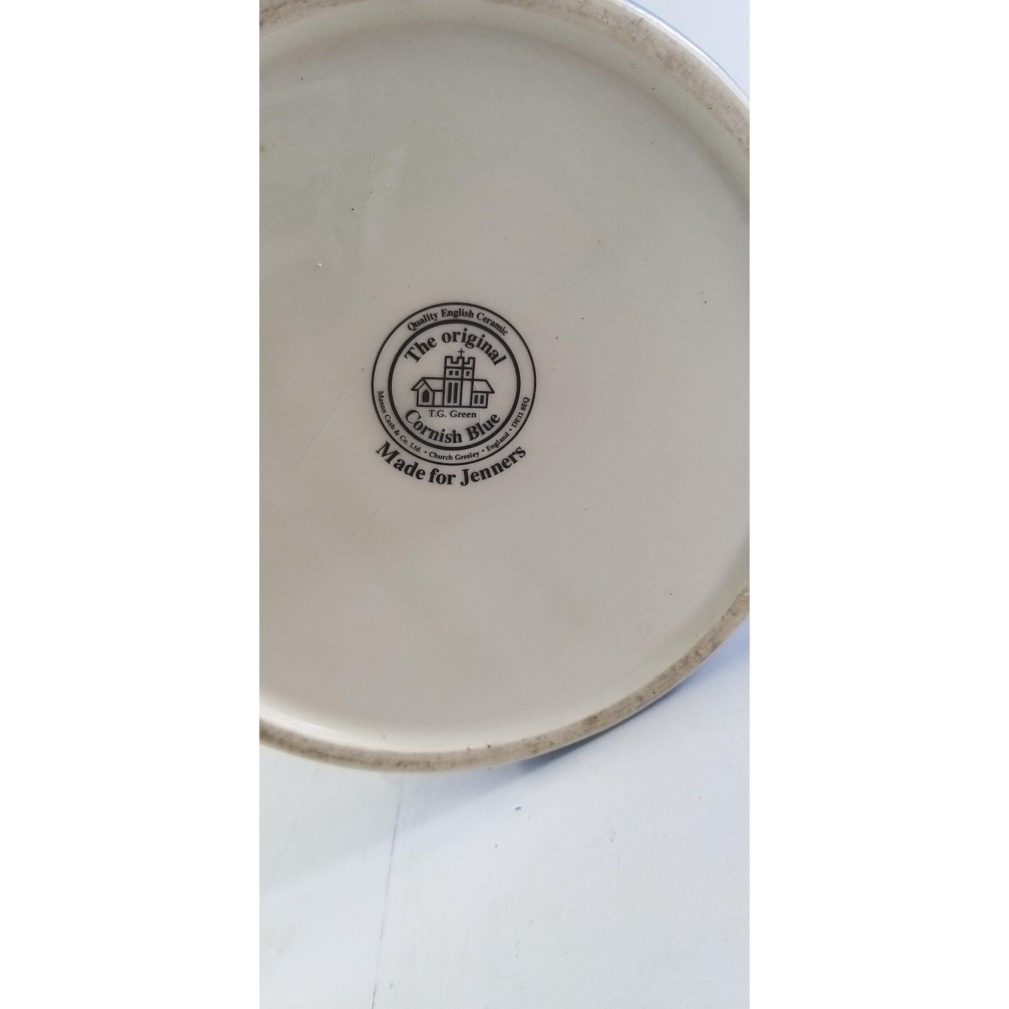 CORNISH WARE blue and white SHORTBREAD biscuit barrel with lid. Made for Jenners. 20cm tall approx. In good useable condition.