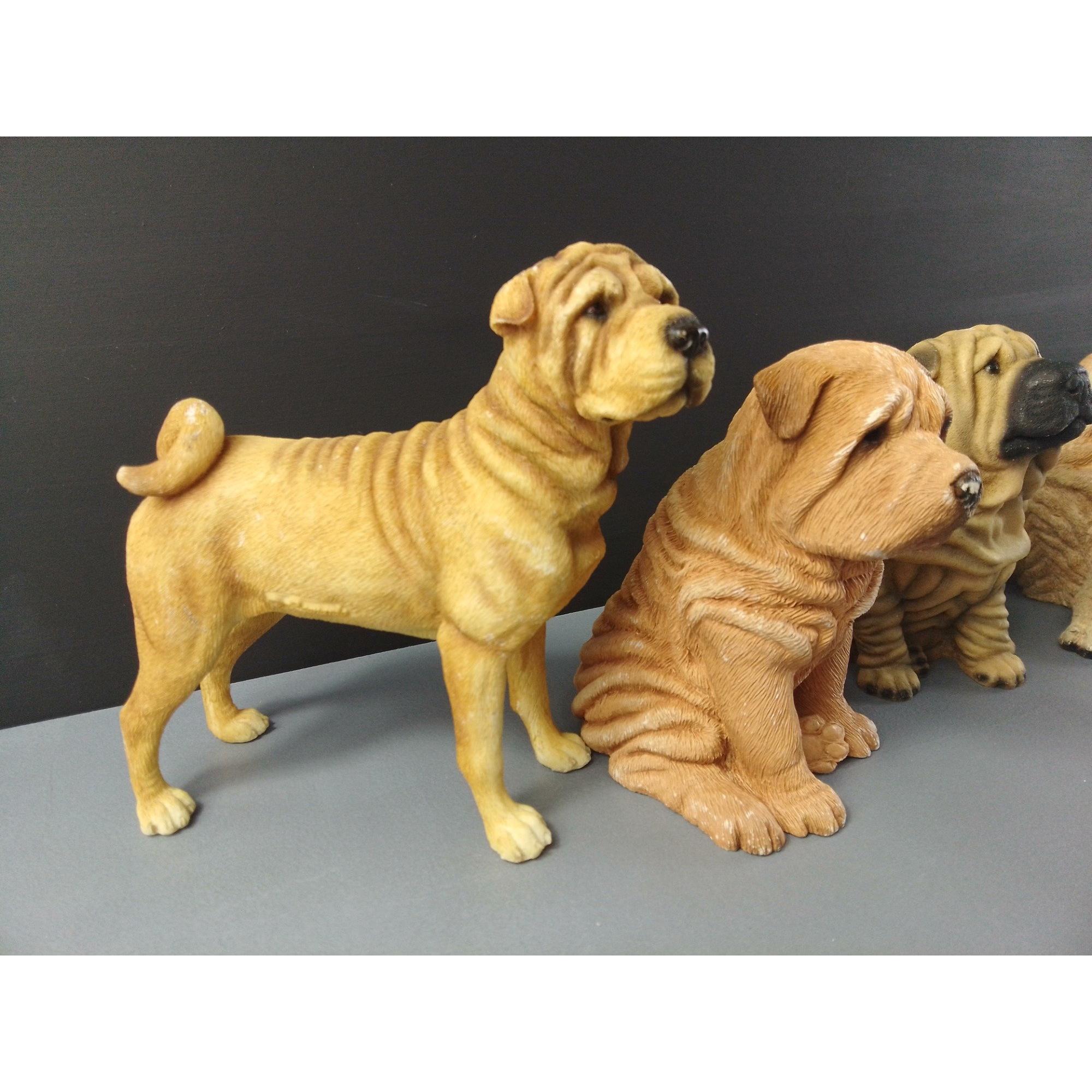FIVE Chinese SHAR PEI dog ornaments by SANDICAST and Leonardo and one other - max height 13cm approxApprox 3 pieces