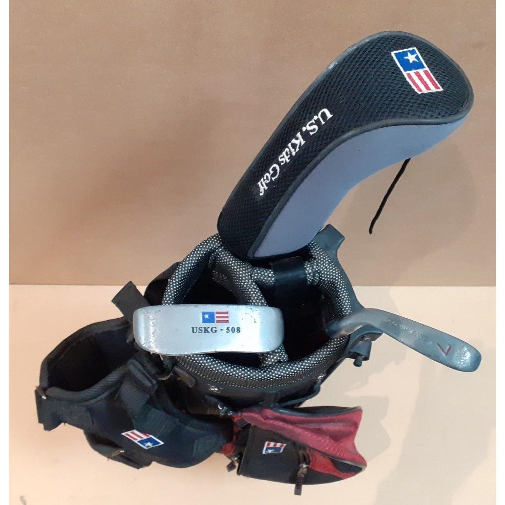 A child's golfing bag with clubs by US KIDS GOLF