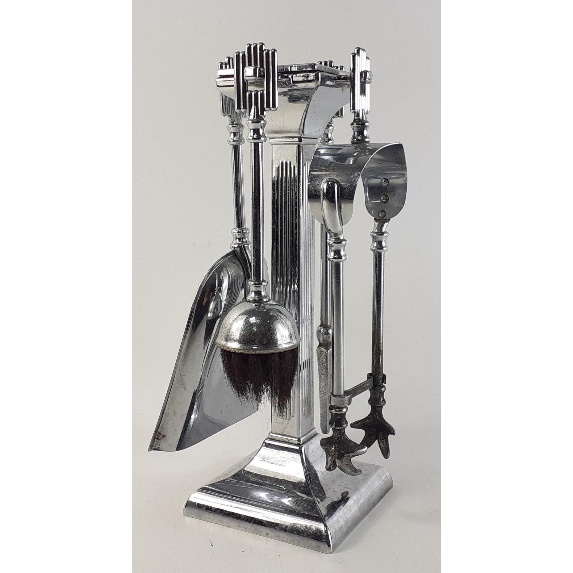An Art Deco chrome 4 piece fireside companion set standing approx 30cm highApprox 1 pieces