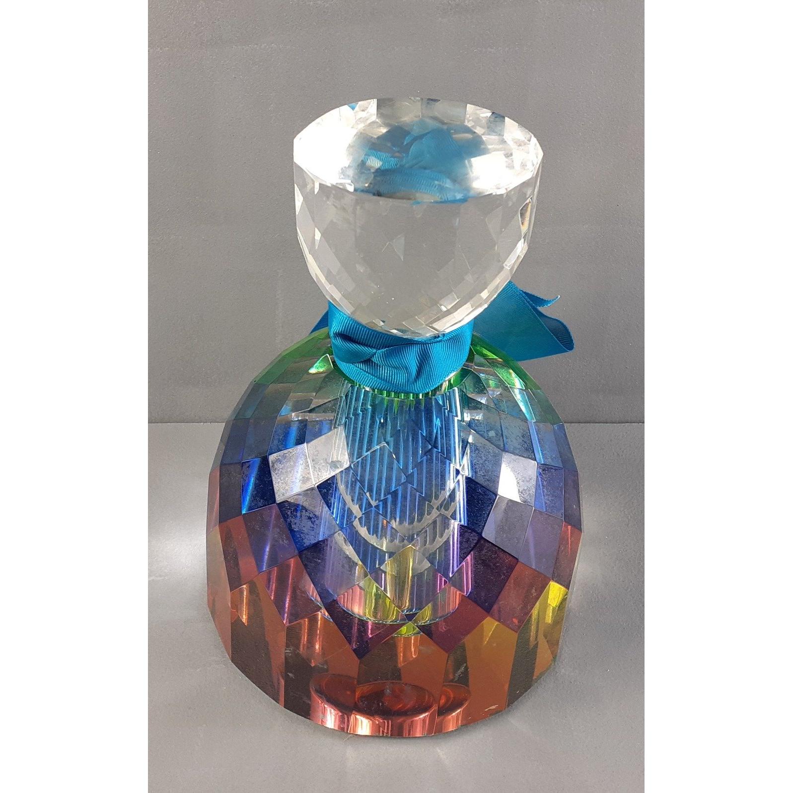 An extremely heavy rainbow faceted glass screw top bottle. 21cm tall approxApprox 1 pieces
